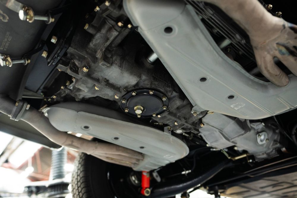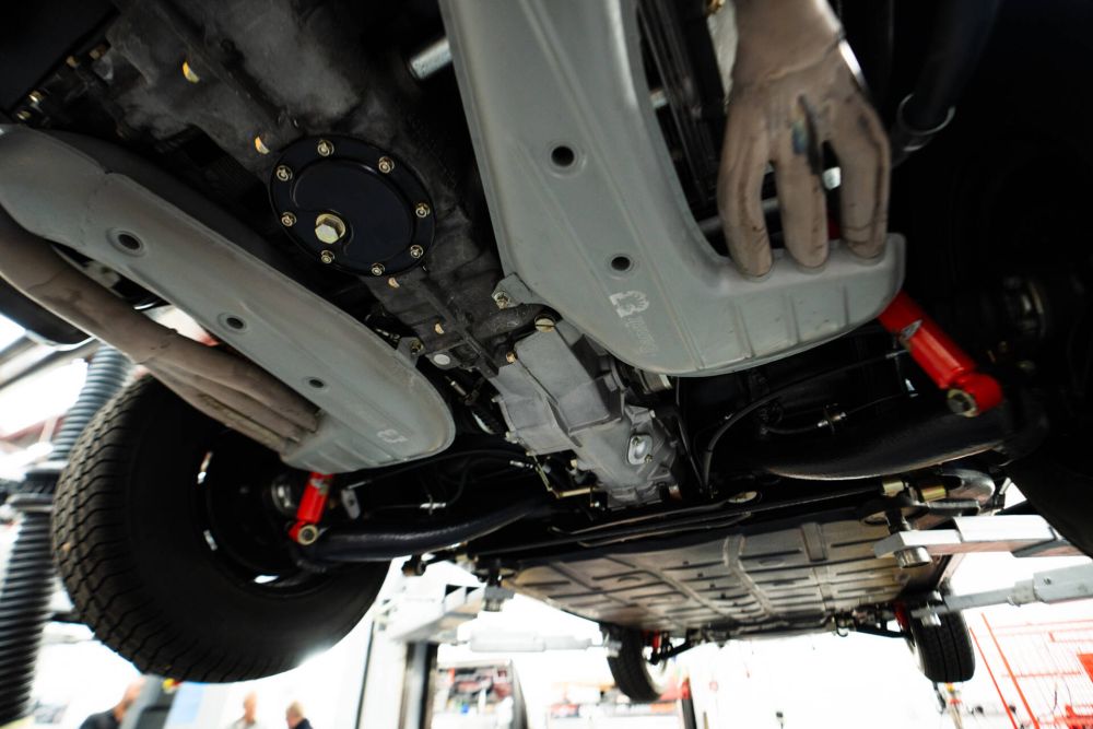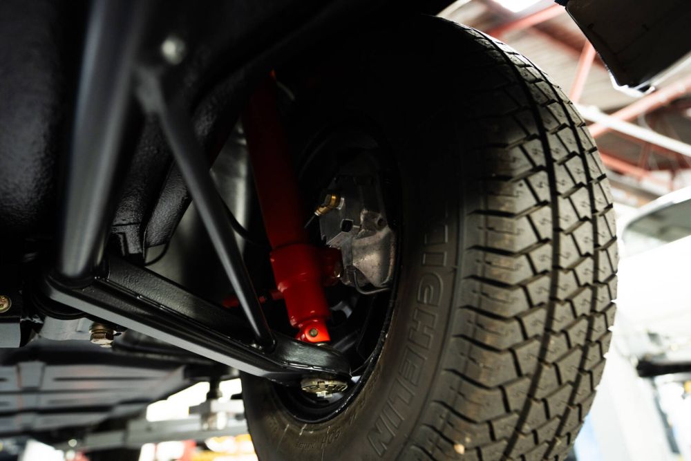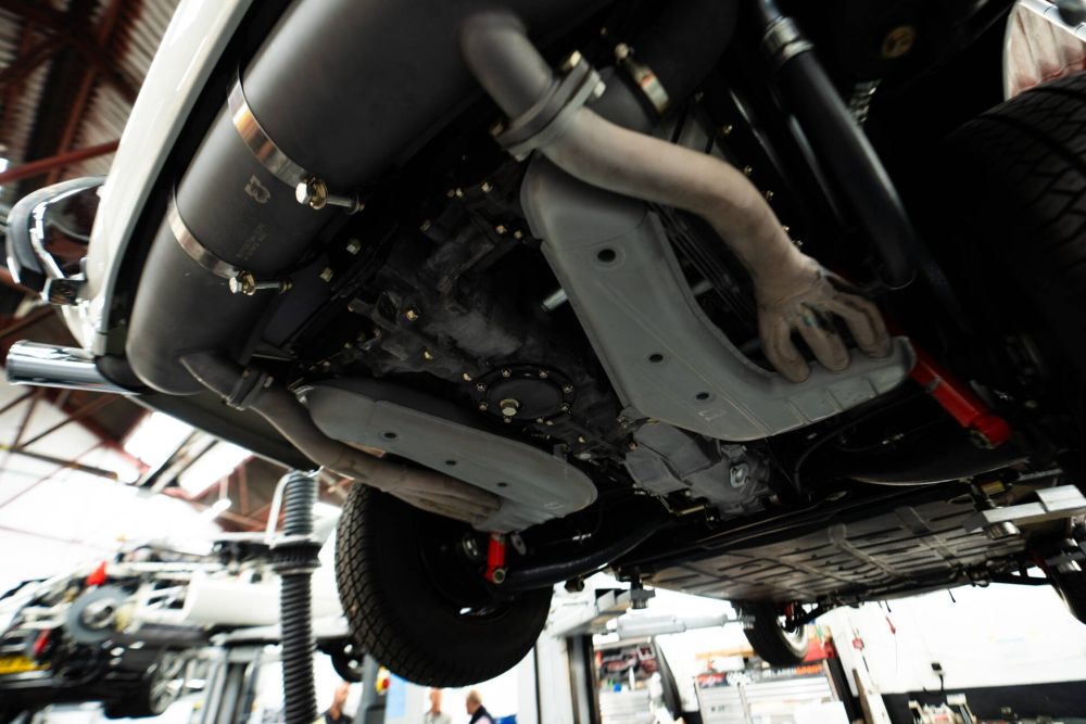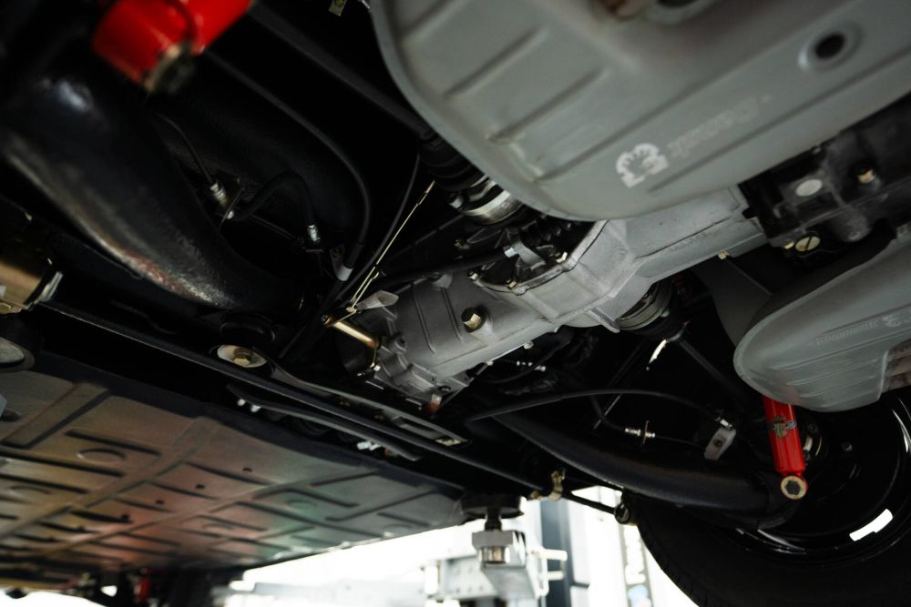 The diecast magnesium crankcase, chain housings and valve covers mean that this car is the first known Porsche Magnesium Flat-Six Crankcase. The Bosch MFI fuel pump was fully restored to preserve originality.  Remarkably the green fan shroud needed no additional painting or repair. The 901/03 transmission has an all-aluminium casing that was used in cars between late 1968 and 1971. This is also the first-ever example of a Porsche with CDI ignition system, which improved combustion and reduced spark plug fouling. The vital addition of 57mm to the chassis length of the car helped the Porsche 911combat the dramatic oversteer of the earlier SWB models.