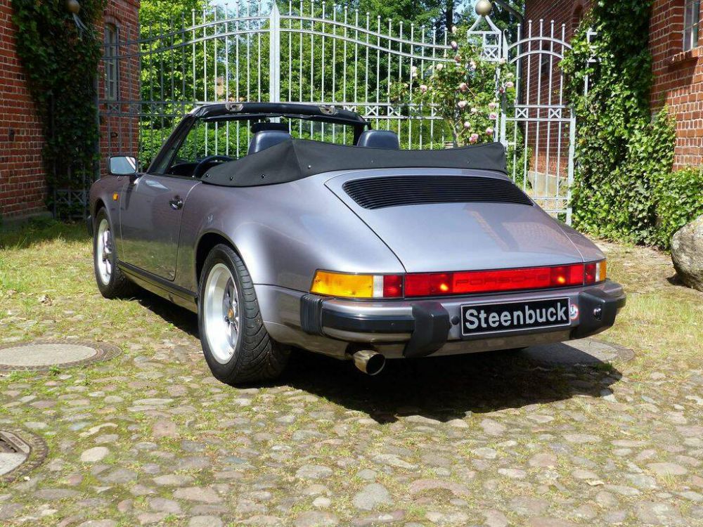 In June 1987, Porsche had built 250,000 models of the 911 series. To mark the occasion, there was an anniversary model, of which only 205 convertibles were produced out of a total of 875 units. Our Porsche 911 Carrera 3.2 Convertible in the special paint finish diamond blue metallic is part of this series. The delivery took place according to the Porsche certificate in August 1987. Porsche confirms that our collector’s item has matching numbers. The warranty and maintenance booklet is stamped until 2013. The classic car has been in current ownership since 2011 and all work, including servicing, has been documented since then. This also confirms the low mileage of approx. 67,500 km.  A Porsche convertible is always something special, and the anniversary model with its low number of even more so! EXTRAS: Delivered in August 1987, anniversary model, power hood, raffle leather seats, cassette radio