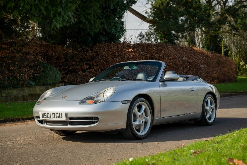 This super low mileage Porsche 911 996 Carrera 4 Cabriolet was supplied new by AFN Limited in London W4 on the 1st March 2000. This very original, highly desirable manual transmission car has covered just 23000 miles from new and comes with an impressive full service history, original document wallet with manuals, spare key, MOT’s, service invoices and old V5’s. Finished in Artic Silver with Black Leather upholstery and Blue hood, this Carrera 4 also features a very desirable factory hard top which is included in the sale.