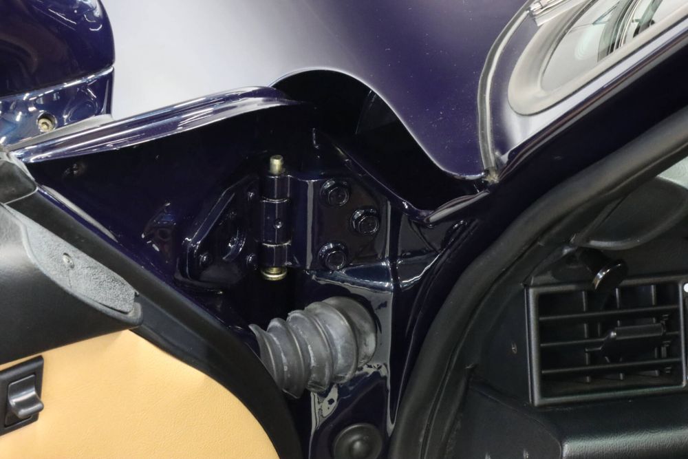 Die beige Leder-Innenausstattung zeigt sich ebenfalls in einem guten Originalzustand. Das beige Verdeck und die im Farbton identische Persenning sind neuwertig.