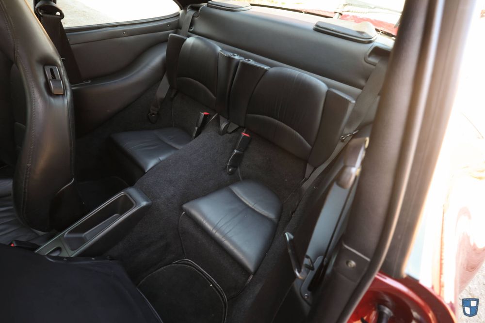 The undercarriage of the car presents very clean. All factory coatings and no signs of rust or repairs. Beautiful red Porsche brake calipers - rotors and pads showing plenty of life. The car features a Cargraphic exhaust system for that bit of extra sound - nothing too loud though. Apart from the exhaust a beautiful correct and original 993. Not lowered, original suspension, no spoilers or racing history. A clean and original car that was used only on the road. The engine bay presents clean, the doorjambs have their original decals in place and the front 'frunk' is all original. The upholstery is clean and all in place. The front 'belly' is all clean and original.