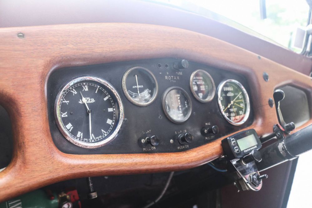 A wooden dash holding original Smith instruments is elegant in its simplicity.
