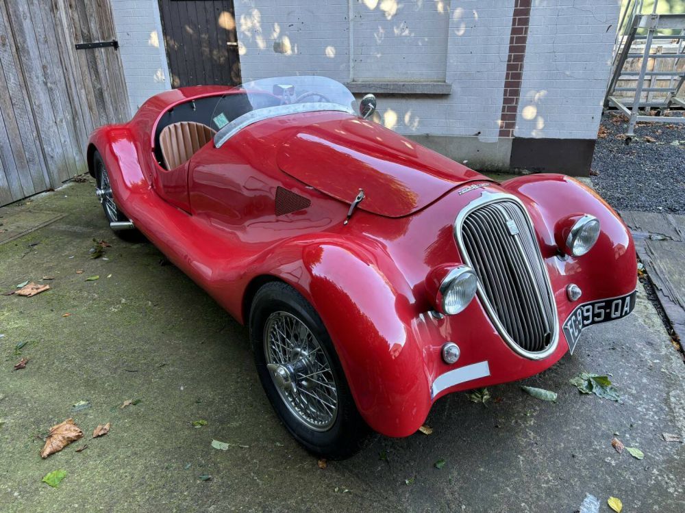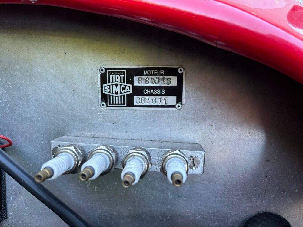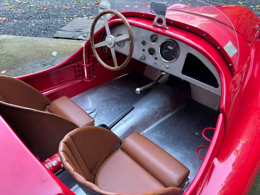 A Simca 8 1200 Barquette Gordini Replica. We can say nothing other than the fact this is a very nicely built lightweight racer. The car has been built around a steel Simca 8 frame with a handmade aluminium body. Since its build it has only travelled 1.054 km which shows to its advantage. Absolutely everything from top to bottom is in superb condition. The quality of the aluminium body panels is great and the shut lines are perfect. The newly well-applied red paintwork is pristine. Whilst the car’s interior is spartan, it is also undoubtably the case that the workmanship has been meticulously executed. The bucket seats are upholstered in brown leather, which contrasts nicely with the bare aluminium inside and the flame red exterior. The 1200 engine has been fitted with twin Webers that propel this Simca 8 a lot faster up the road than you might expect. The chassis and suspension parts are all pristine, which is reflected in the car’s superb handling. The drum brakes complete the driving experience and are more than adequate to bring this little racer to a quick halt. The manual transmission is precise and free of play. If you just happed to be in the market for a unique 50’s racer in top quality condition, this is the car for you.