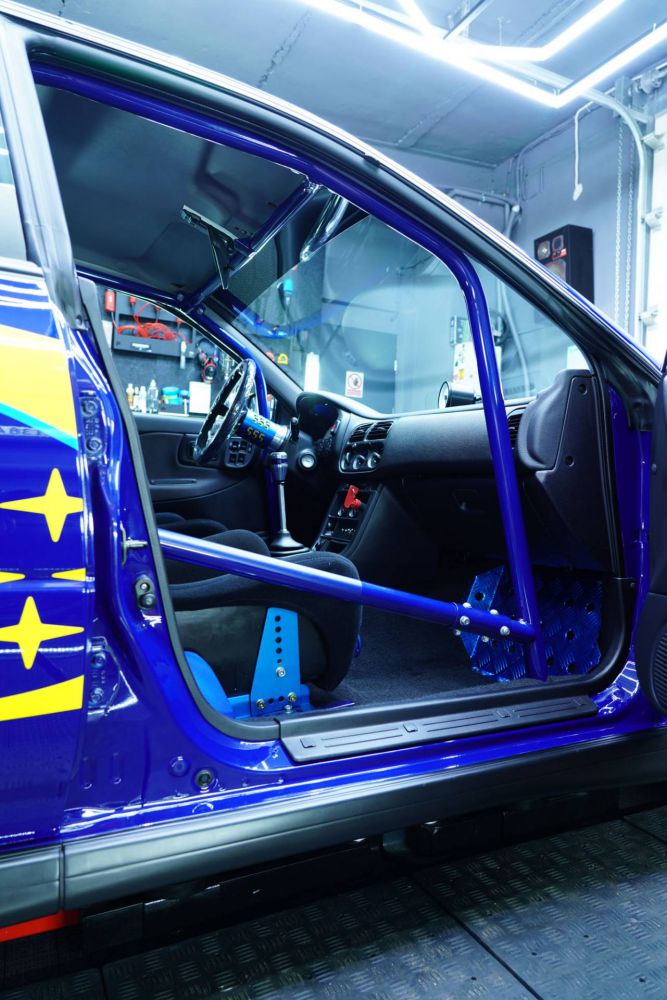 After covering a 3 thousand kilometres with the car, Lempereur decided to prepare it for Group N. He set about this in 1998 and 1999, trying to source the best available parts. Among other features, the car has therefore been equipped with a Safety Devices roll cage (complete with its certificate of conformity), Prodrive bucket seats, a set of additional PIAA lights, a Sparco strut brace, special exhaust, extra gauges and a rear spoiler. As was often the case with his cars, Lempereur made a special adapter for the steering column to suit his height, and this is marked with the figures '555'. The electronic management system for the engine was fitted with a Superchips Impreza chip, in order to increase its power slightly.