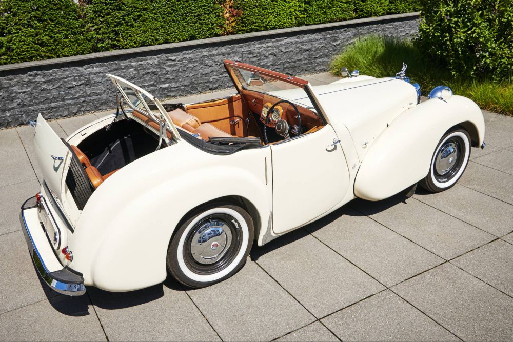 Der Triumph Roadster war das erste Nachkriegsauto der Triumph Motor Company, den diese von 1946 bis 1948 herstellte und zunächst als 1,8 Liter, später als 2,0 Liter Modell erhältlich war. Bereits in den letzten Jahren des 2. Weltkriegs wurde das Fahrzeug in seiner Form entworfen. Wegen der Schwierigkeiten, im Nachkriegs-England Stahl zu beschaffen, baute man die Karosserien aus Aluminium und setzte dafür Gummi-Pressstempel ein, die vorher für den Bau der größtenteils aus Holz gefertigten Mosquito-Bomber verwendet worden waren, die im Krieg bei Standard gebaut wurden. Die Sitzbank war für drei Personen vorgesehen, daher war eine Lenkradschaltung eingebaut. Platz für zwei weitere Mitfahrer gab es auf dem aufklappbaren Notsitz im Heck, dem sogenannten Schwiegermuttersitz, mit einer eigenen, hochklappbaren Windschutzscheibe. Für den Einstieg dafür gab es Trittstufen am Heckstoßfänger.