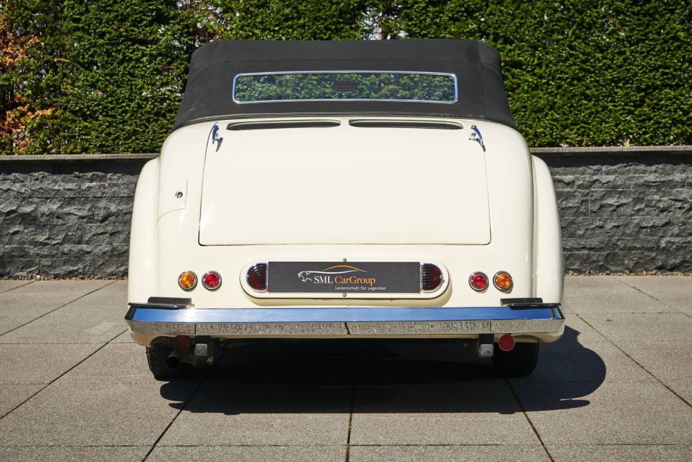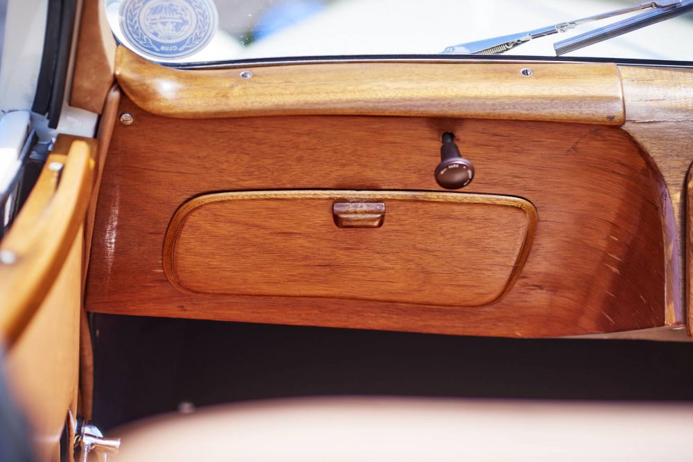 Somit befindet sich der Roadster technisch in einem sofort einsatzbereiten Zustand. Auch optisch sticht das Fahrzeug durch seinen sehr schönen Zustand heraus. Holz, Chrom, Leder und Stoffverdeck sind ohne Beschädigungen und sehr gut gepflegt.
