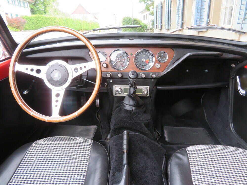 Schönes und gepflegtes Fahrzeug in gutem Zustand! Ausgestattet mit dem seltenen Overdrive und so fährt sich der Wagen ausgezeichnet. Im Jahr 2021 wurde eine grosse mechanische Überholung gemacht - vieles ist neu (Kühler, Tank, Auspuff, Stossdämpfer, Reifen usw.). Die Lackierung und die Karosserie inkl. Unterboden sind gut. Das Verdeck ist neu und die Sitze wurden neu aufgepolstert und überzogen. MFK 2.2022 Veteran. Ausgezeichneter Einstiegsklassiker!