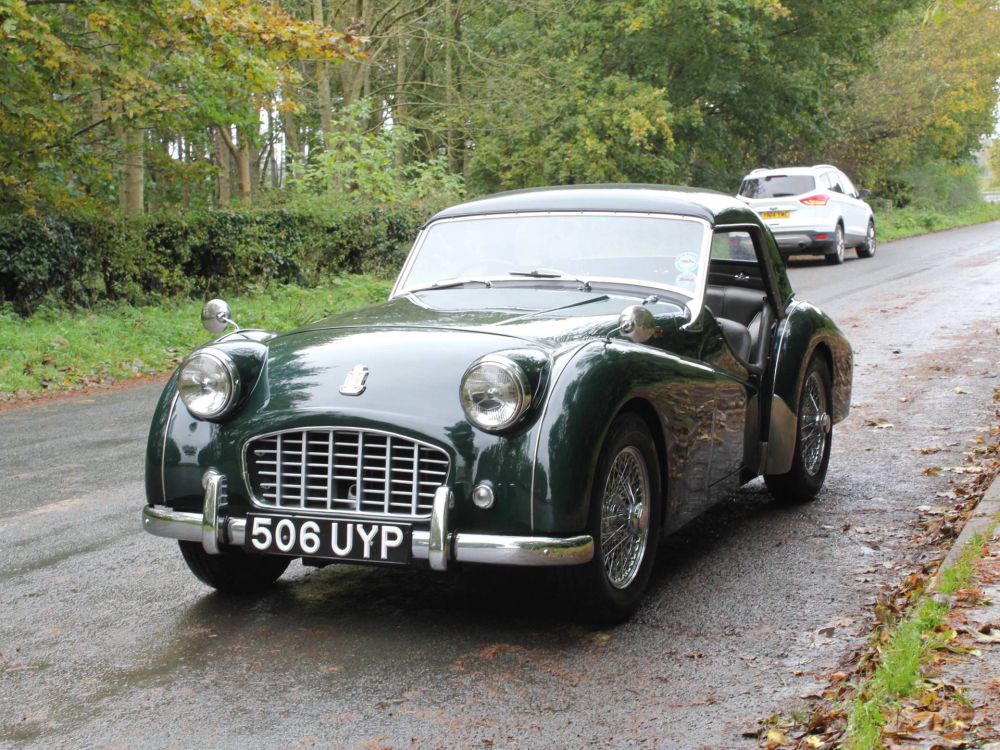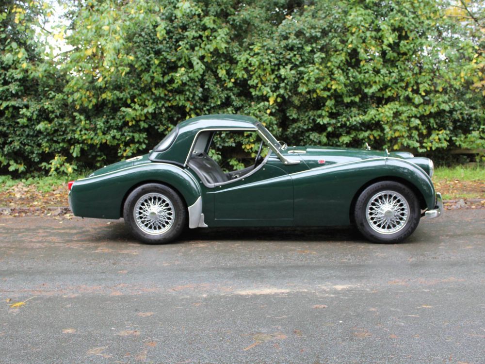 506 UYP is a beautiful example presenting superbly with a gleaming British Racing Green paint finish, lovely brightwork, excellent chrome wires and a wonderfully detailed engine bay. The chassis, floor pans and general underside is of an excellent standard, the interior trim very well presented and the weather gear and hard top are all of a superb standard. On the road our TR3 is first class, the engine is super fit and healthy offering excellent oil pressure, the four speed with overdrive gearbox is first class and the steering feels correct and precise, the brakes sharp and the handling feels superb. Overall this is a superbly well presented car, it drives exceptionally well and is incredibly well sorted and well prepared with some lovely desirable upgrades.