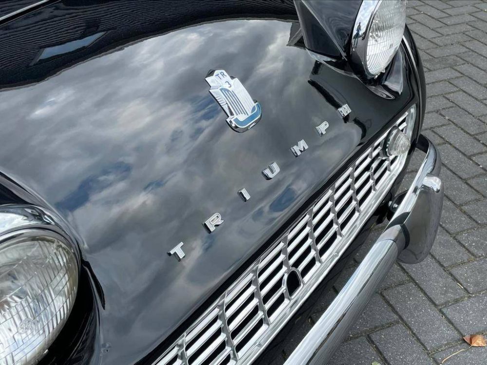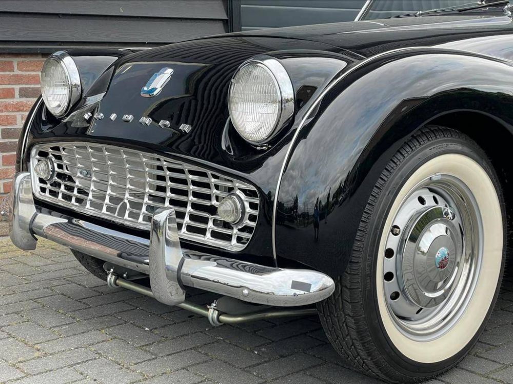 This Truimph TR3 A has been completely body-off restored. 2 liter engine with 2 SU carburettors 100 hp with overdrive. Convertible roof and tonneau cover. Moto-Lita wooden handlebar.