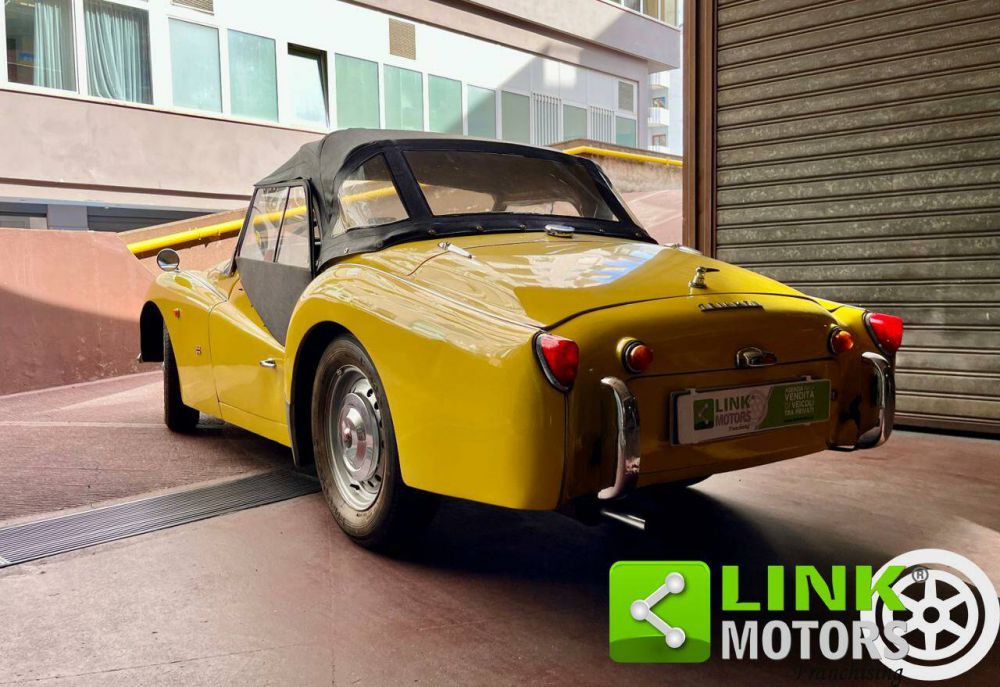 TRIUMPH TR3 A Motore: 1991 cc Potenza: 74 kW / 101 CV Cambio: Manuale Porte: 2 / Posti: 2 Immatricolazione 1959 Percorrenza 5615 Miglia da contachilometri Colore: GIALLO Carburante: BENZINA