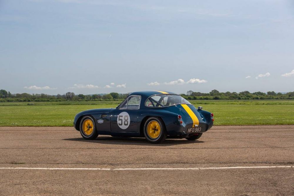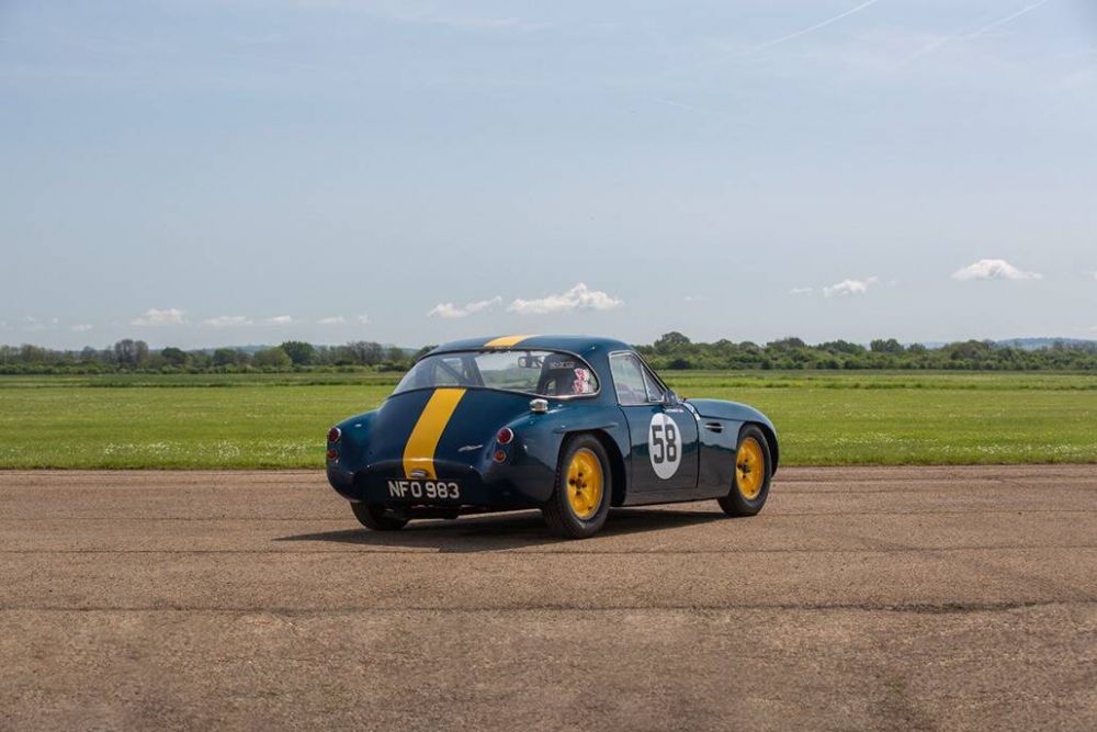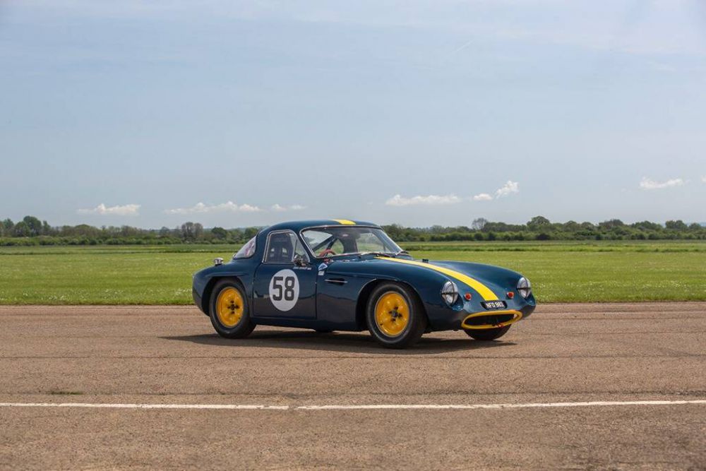 This TVR Grantura MKII, chassis 7/C/238 and registered AUD 100, was first registered in October 1960 and is one of four TVR works lightweight development cars built for competition use. The Works cars were prepared  for international race meetings and differed to the standard production examples by featuring a lightweight, strengthened chassis, a very thin glass fibre body, lightweight alloy ‘wobbly-web’ wheels, a tuned Coventry-Climax engine and close ratio gearbox.