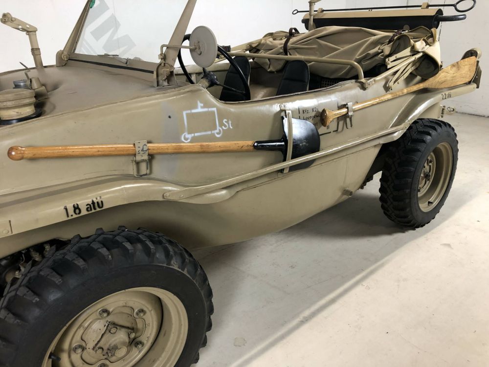 This Schwimmwagen presented here is a very original one where all numbers match. It comes from Norway and still has a Norwegian license plate. Furthermore there is a Volkswagen certificate. This car has remained in Norway since WW2, and since 1981 with the same owner, great patina, and drives very well.