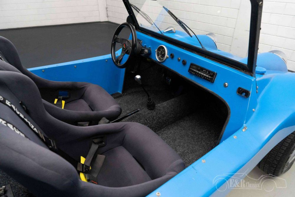 As you can see in the pictures, this Ruska Buggy is in good condition. It has a bright blue paint that matches the sporty and unique look of the buggy. The interior is equipped with bucket seats with racing belts and a sports steering wheel. The Volkswagen buggy is also equipped with a black soft top that you can easily fold so that you can enjoy the sun while driving.