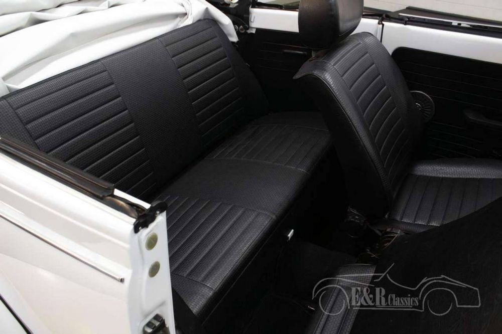 The Volkswagen Beetle Cabriolet that we offer for sale here is truly a sight to behold. It has a beautiful white paint that combines very nicely with all chrome accessories and the black soft top. The interior is in very neat condition and has black upholstery that contrasts nicely with the white paint.
