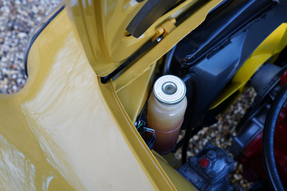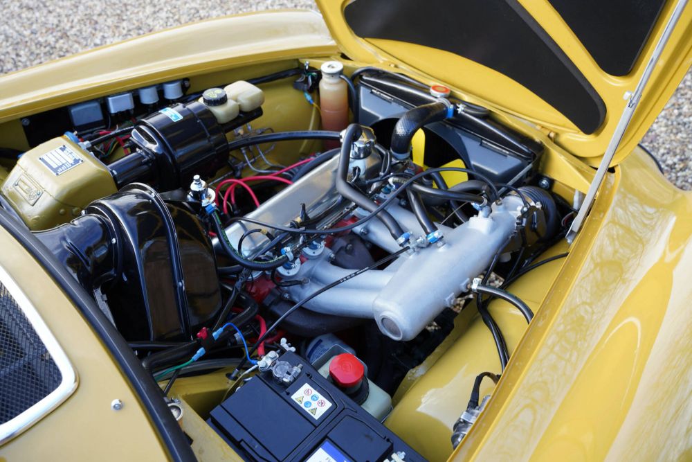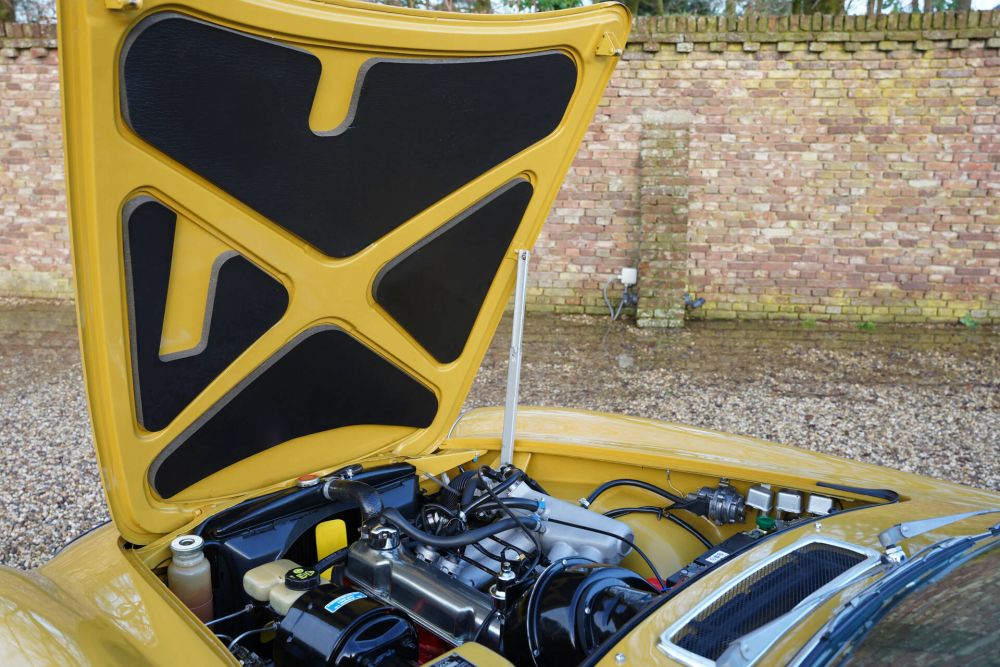 The body panels fit nicely, and the Safari Yellow color is an absolute treat for the eyes—just as we mentioned. The paint is of good quality, and the restoration was performed well. The chrome parts look very neat, as do the wheels, and the rubber seals are fresh and make a very good impression. You can really see the restoration efforts all around. Under the hood, the engine bay is beautifully detailed with correct components, looking as if it just rolled off the factory line. Given the scope of the work performed, that’s probably no surprise.