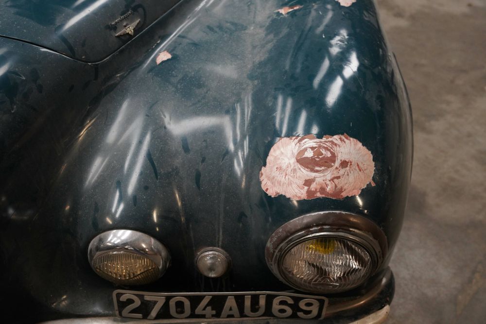 It was delivered new in January 1950 in Paris and still wears its original French license plates. And not just any plates. One from 1950, and another still in place from 1964. A number you almost whisper when you say it: Rhône, département 69. Romantic, isn’t it?