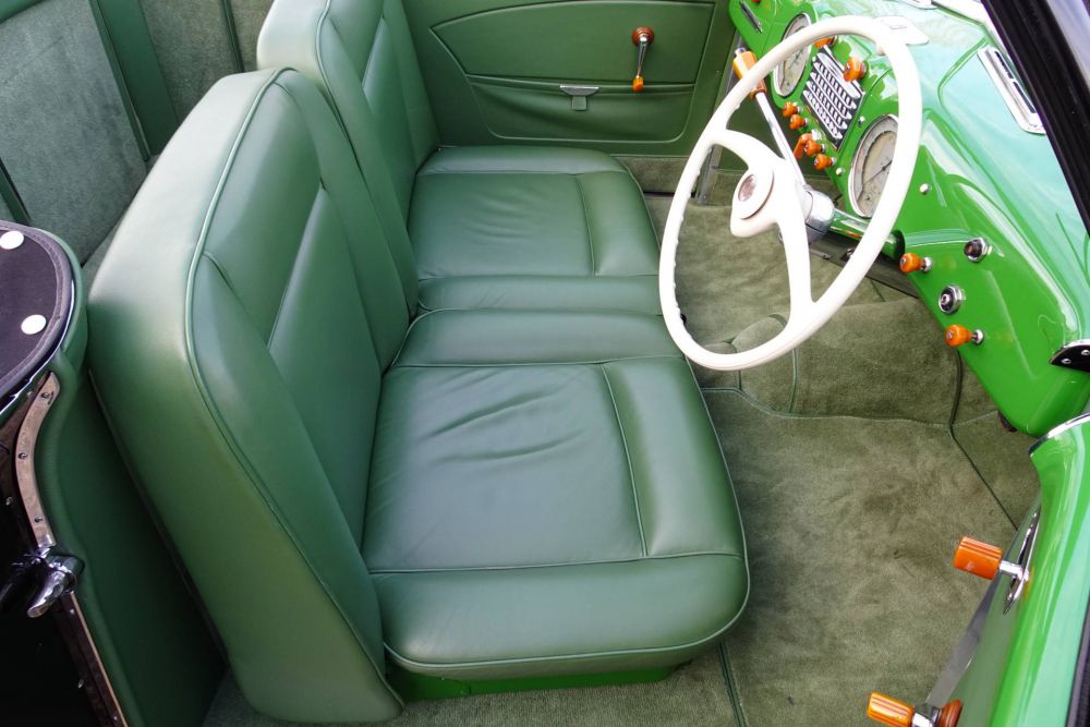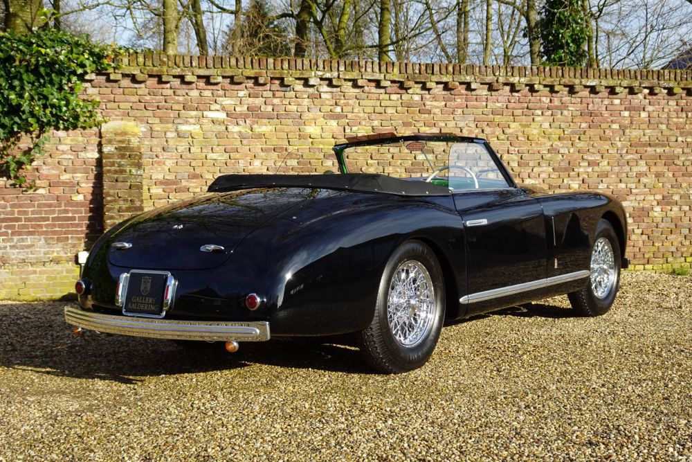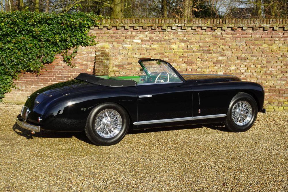 Dispatched from the Alfa Romeo factory in August 1950, this car was destined for the Swiss Alfa Romeo agent in Lugano, Switzerland. According to research by a previous owner, this specific 6C 2500 Pinin Farina Cabriolet was the sole example delivered in the striking Black over Green livery, exactly as seen on the car today. In 1957, it was purchased from a Geneva-based garage by Parisian gentleman Monsieur Michel Pfau, believed to be the second owner at that time. Pfau, an avid jazz enthusiast, and two friends toured in the luxurious Alfa Romeo, attending Jazz festivals in posh destinations such as Cannes, Nice, and Berlin. A photo of them taken around Cote d'Azur is preserved in the car's impressive history file.