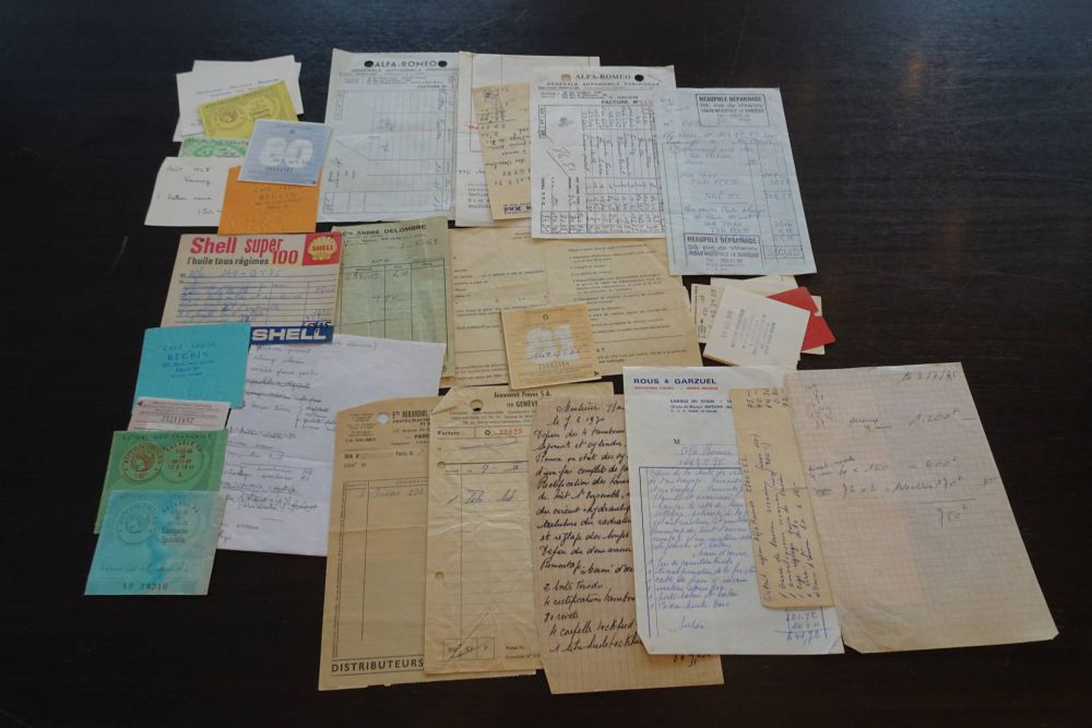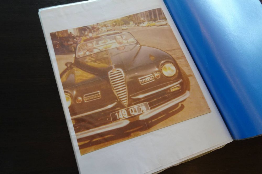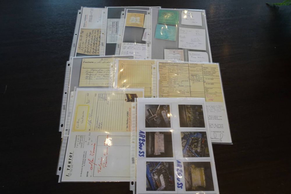 August 1950, first delivery Lugano, Switzerland. Believed to be the only one in this colour combination. The impressive history file dates back over half a century, containing many restoration photos, an abundance of receipts and records, and old photos of Pfau and his friends. The original owner's manual is included, and the old original French license plates still adorn the car. Importantly, the original engine remains in the car, confirmed by the Alfa Romeo 6C 2300-2500 registry.