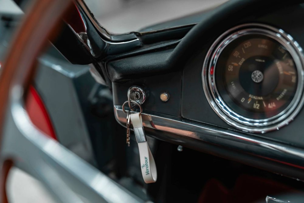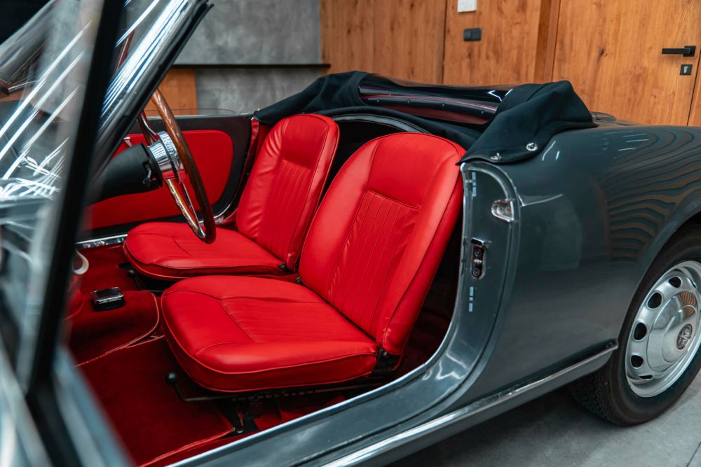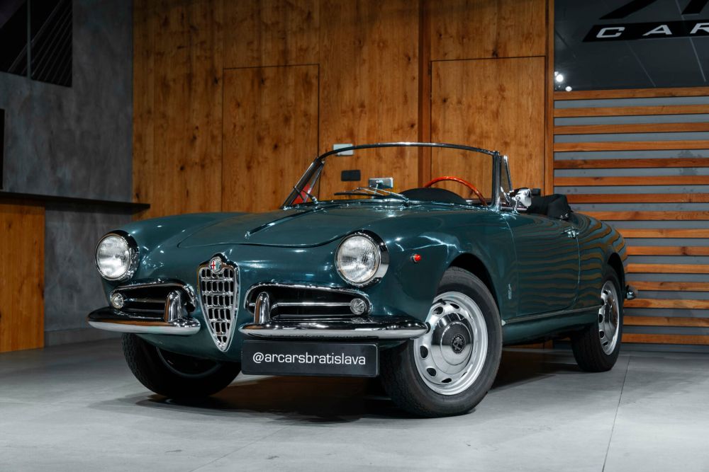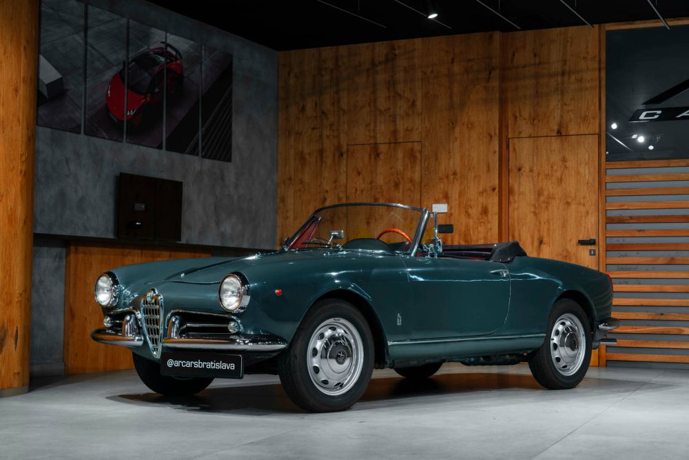 AR CARS BRATISLAVA∗ is offering for sale an iconic Italian convertible, the ∗Alfa Romeo Giulietta Spider Veloce∗, model 101, designed by Bertone and manufactured in 1961. This collector’s piece boasts a stunning combination of a grey exterior and red interior.