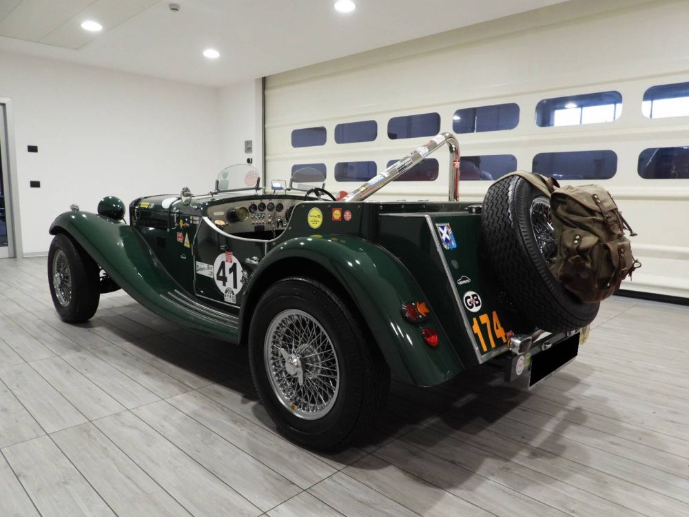 CARATTERISTICHE SPECIFICHE JBA FALCON TRASFORMATA ”MORGAN PROTOTIPO LE MANS 1959”: Motore Ford pinto 2000cc con volano alleggerito, Pistoni stampati, Collettore di scarico artigianale in acciaio e doppio carburatore doppio corpo weber da 40, Radiatore alleggerito in alluminio con doppia camera di raffreddamento a nido d’ape, Freni a disco sull’anteriore e a tamburo sul posteriore (pastiglie tar-ox da competizione), Frizione a disco e spingidisco nuovi, Impianto elettrico totalmente nuovo, Scarico quattro, in due, in uno, (libero) e terminale ansa marmitte, Fanaleria supplementare marshall, Strumentazione (contagiri, tachimetro, pressione olio, temperatura olio, temperatura acqua e voltmetro, TUTTI smiths dell’epoca), Orologio Smiths dell’epoca a corda esterna con riserva di carica (8 giorni), Volante Morgan originale dell’epoca, Aeroscreen Brookslands originali, Pedaliera da competizione, Accensione elettronica a pulsante, Pompa carburante doppia (meccanica ed elettrica con inserimento a comando), Roll bar (OMP di sicurezza, Cinture a quattro punti con Sedili anatomici dell’epoca