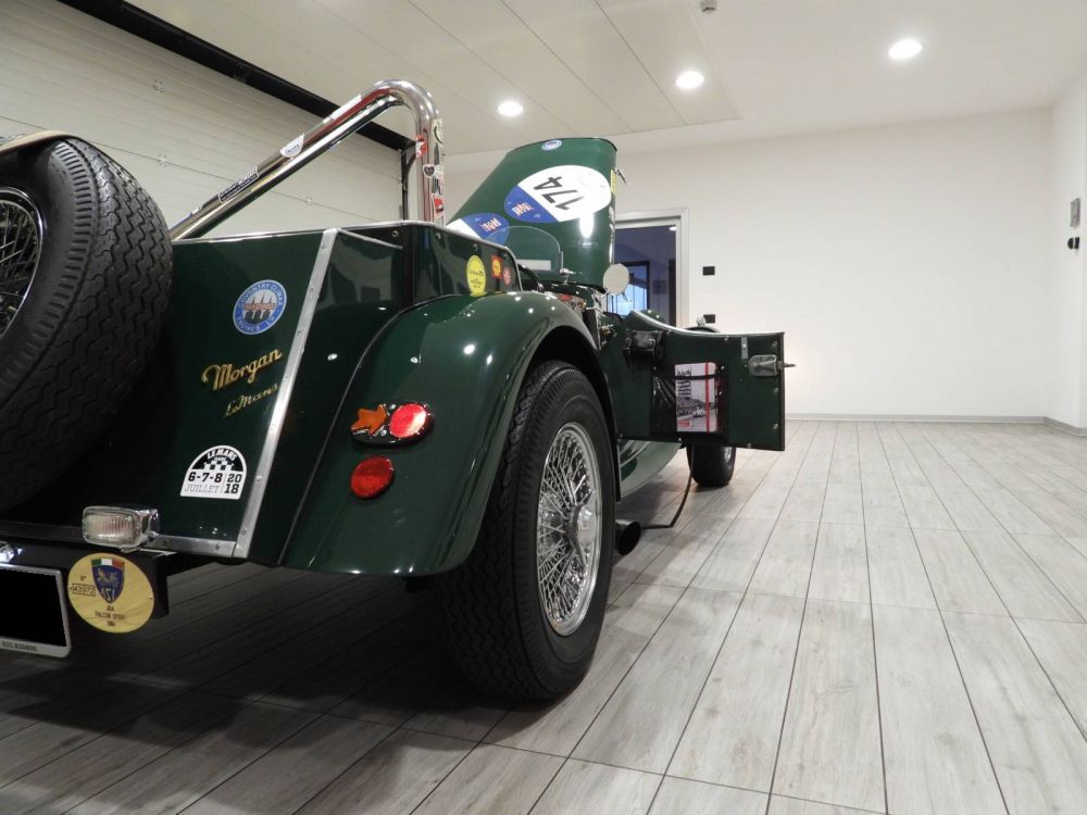 SPECIFIC FEATURES JBA FALCON TRANSFORMED MORGAN PROTOTYPE LE MANS 1959: Ford pinto 2000cc engine with lightened flywheel, pressed pistons, handcrafted steel exhaust manifold and double 40 weber double body carburettor, lightened aluminum radiator with double nest cooling chamber bee brakes, disc brakes on the front and drum brakes on the rear (competition tar-ox pads), new clutch disc and pressure plate, totally new electrical system, exhaust four, in two, in one, (free) and lug terminal mufflers, Marshall additional lights, Instrumentation (rev counter, speedometer, oil pressure, oil temperature, water temperature and voltmeter, ALL Smiths of the time), Smiths watch of the time with external string with power reserve (8 days), original Morgan steering wheel of the period, original Brookslands Aeroscreen, racing pedals, electronic push-button ignition, double fuel pump (mechanical and electric with command insertion), roll bar (safety OMP, four-point seat belts with anatomical seats of the period