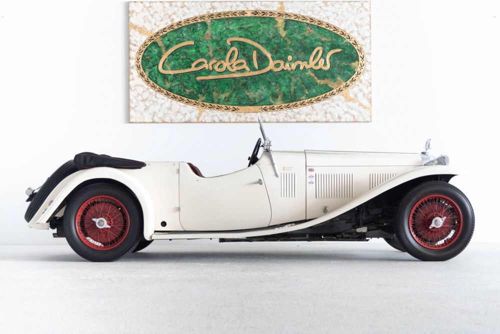 The Alvis Speed 20 SA Vanden Plas Sport Tourer is a true jewel among classic automobiles. Behind this sonorous name lies a vehicle that embodies not just an era, but an entire epoch. With its impressive presence, timeless design and first-class craftsmanship, this classic car has captured the hearts of car enthusiasts all over the world. Especially in the color combination found here, Old English White with red leather an absolute Eycatcher. The Speed 20 SA offered here for sale was initially delivered to England in 1933 and convinces visually and technically with its dreamlike condition. It has had several changes of ownership in its 90 years of life, but it is impressive that every change is documented and confirmed by the Alvis archive. The 1933 style Vanden Plas body is equipped with large instruments in the dashboard and larger doors, cut through, for better access. Only 32 cars of this exact type were built. According to the Alvis Register, only 7 of these 32 vehicles are known to exist in the world. Under the long hood hides a powerful six-cylinder engine which was revised in 2016 by the company Hagenlocher for over 20,000 euros and which gives the Alvis Speed 20 SA its speed. This vehicle was built for those who value driving pleasure and speed. With balanced suspension tuning and precise steering, the Alvis offers unparalleled performance on the road.