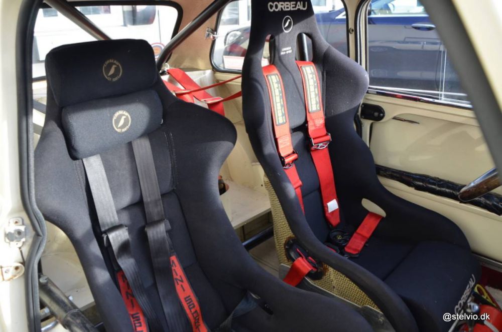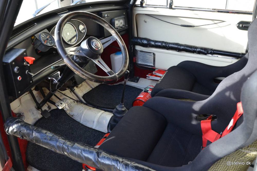 The engine is refurbished and rebuild to 1293cc, balanced and fitted with a modified top-end. It has a high compression ratio of 12.1:1, modified cam as well as AP pistons. It pulls evenly and eagerly up to 7500 r/m. We don’t know the exact maximum power of the engine, but our guess would be north of 125bhp. Matched to a straight cut close-ratio transmission with LSD, the car is very quick and well performing.
