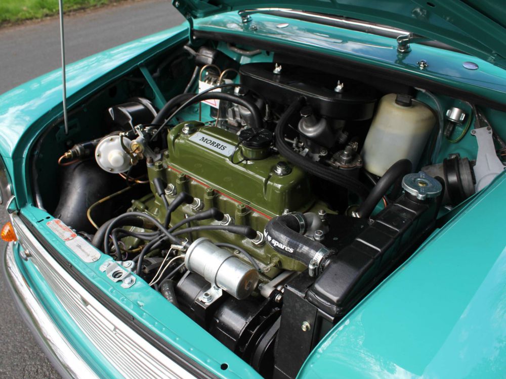 The work began with the previous owner commissioning a full re-paint with all trims, rubbers and glass removed. In order to achieve a top quality engine bay finish, a decision was made to remove the correct 1275cc MKIII Cooper S engine and ancillaries to re-paint the engine bay. With the risk of the structurally sound underside not matching the standards of the rest of the car, subframes and underside ancillaries were removed to access painting the floor pans. The Mini was then built up, the engine was cleaned up and painted, ancillaries were detailed and the subframes powder coated. The Mini was put back together fully re-commissioned with thousands of pounds worth of renewed parts and hardware to include new wiring loom, new coolant hoses, heater matrix, various engine gaskets, thermostat, thermostat gasket, water pump gasket, fuel pump gasket, manifold gaskets, engine mountings, clutch and brake master and slave cylinder, brake hoses, brake servo, brake calipers, front brake discs and pads, wheel cylinders, rear brake shoes, front and rear shock absorbers, lower arm bush kit, suspension knuckle joints, rear radius arms, tie bar kit, CV gaiter kit, driveshaft gaiter, adjustable suspension cones, ball joint kit, front and rear hubs, subframe bushes, new clutch arm and release bearing, all new ignition items, rebuilt carbs, service items, new Yokohama tyres and many new rubbers, trims and seals.