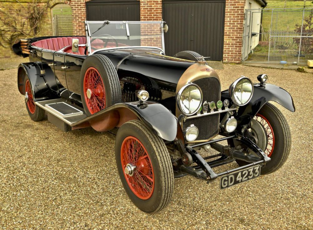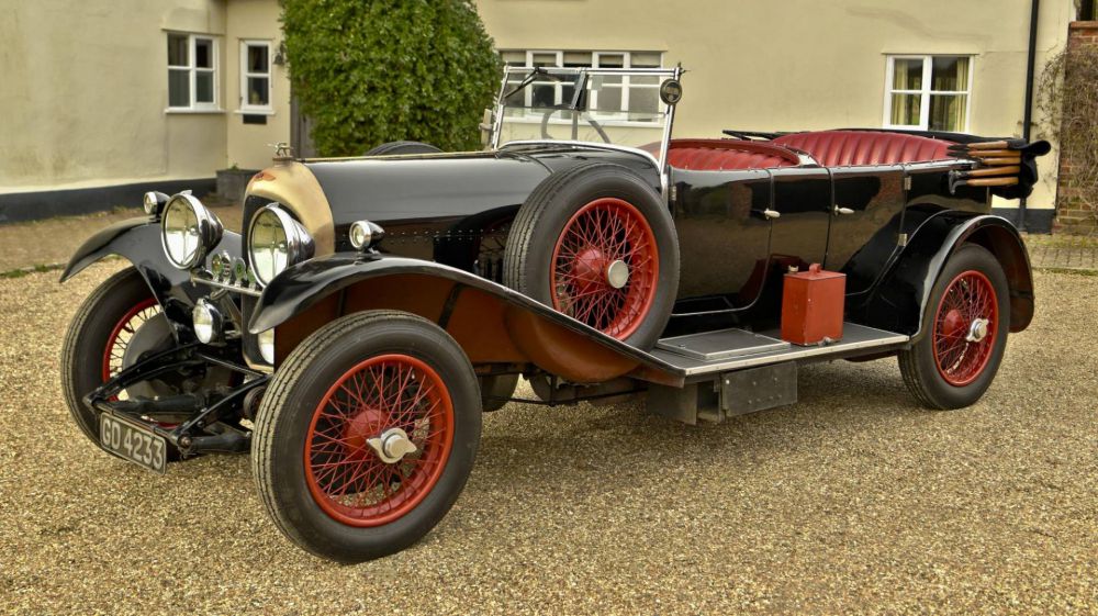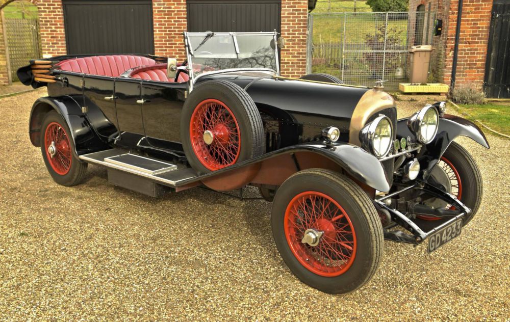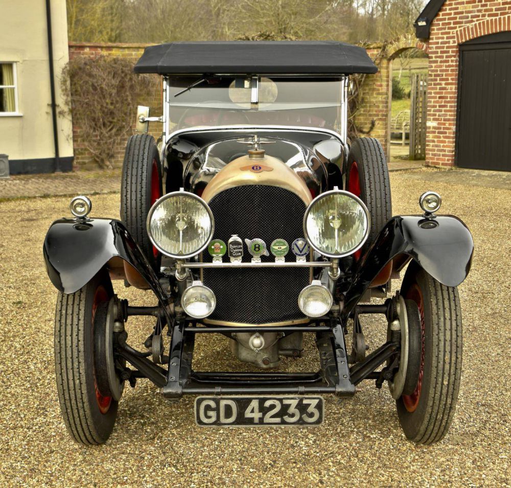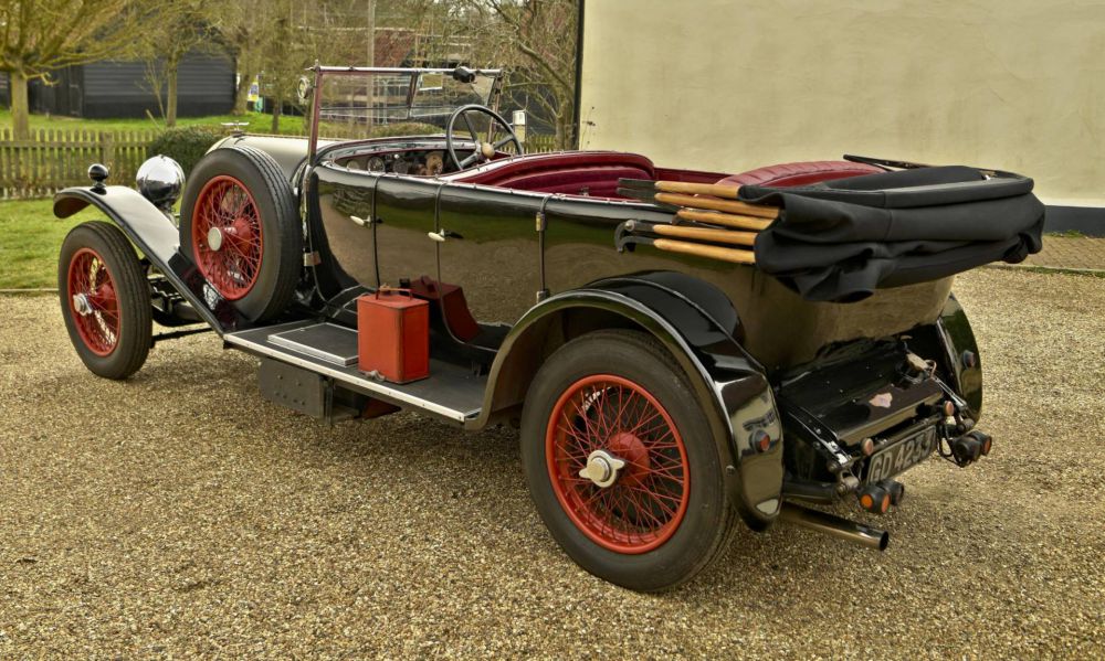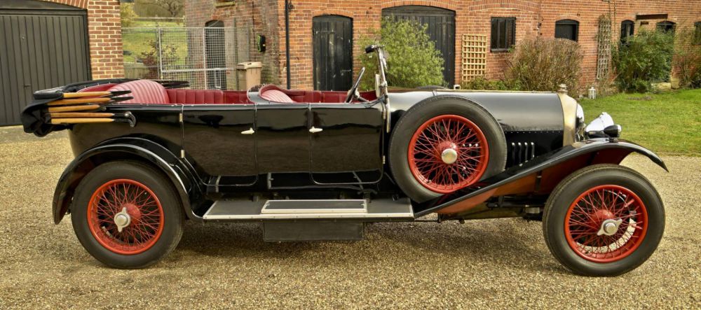 1925 Bentley 3 Litre Gurney Nutting Tourer Chassis number: 1171 Registration Number: GD4233 A very attractive & correct 3 litre Bentley wearing its original Gurney Nutting tourer body as when new. Refreshingly, the car is finished in Black (rather then Green) to the exterior with red wheels & a red leather interior all in fine order with light patination. The car presents very smartly. The car has been under the current ownership for a decade or so forming part of a small collection where it has been sparingly but regularly used. The car comes with full all weather equipment including a black mohair hood, tonneau cover and side screens plus a glass auster screen so your rear passengers can maintain their dignity when travelling at speed. This WO is a delight to behold. The original Gurney Nutting tourer coachwork is exquisitely executed and beautifully detailed and rare to find on the three litre chassis. The three litre engine numbered LM1336 is slightly later from a speed model chassis LM1338 which has the SS prefix to its number and is correct for the period. On the road the car performs well in all respects and makes for an enjoyable driving experience. The history file is detailed and dates back to the 1970's with some copy form record books in the 1920's. The car was restored well in tha 1970's & is in excellent condition today. 1171 spent the 1st ten years of his life in Scotland – firstly with J. D Cousin of Kinachoile, Dunblane, secondly with Peter Sinclair of Alloa which is well known for its coalmines & shipbuilding industries. The 3rd Scottish owner was Fred Shanks whose relative Alexander had founded the A. Shanks & Son Iron Works in Arbroath. In 1806 the firm patented a lawn mower and by 1840 were manufacturing portable steam engines, iron bridges & steam cranes. After WWII the car is known to have been with A Peduzzi – there was an Anna Maria Peduzzi La Marocchina who enjoyed a motorsport career throughout Europe from the 1930s to the 1960s – perhaps there is a connection? Her husband Gianfranco Alessandro Maria Comotti was the official racing driver for Ferrari in the early 1930s & during the war was almost executed for his resistance work in Italy. All in all this is a very nice car that has not been messed around with too much. The accelerator is still centrally mounted & the usual quota of period instrumentation is found on the dash board.