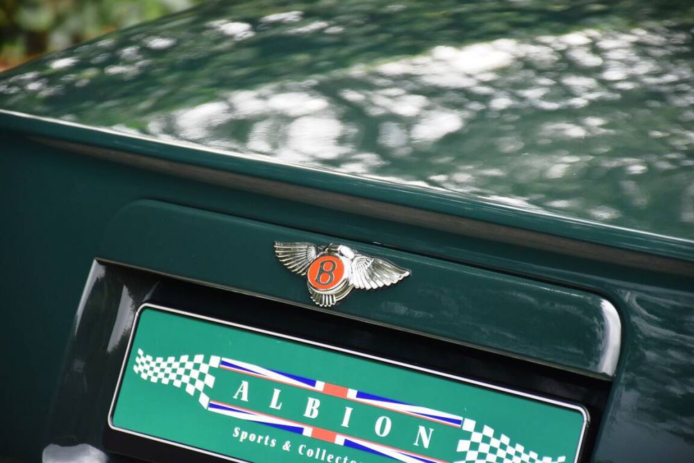 We purchased this stunning Bentley Continental R because of its excellent condition and gorgeous colour combination of Bentley Racing Green with an interior in Spruce piped St. James Red. Also the carpets are matching red and give the car a magnificent appearance which is nothing short of spectacular. This Continental R was built in the third quarter of 1993, which makes it a 1994 MY car with the improved 360 bhp engine and beautifully styled 17 alloys. The car was delivered on the 28th of November 1993 by Auto Becker in Düsseldorf to the first owner, a well-known German industrialist and philantropist. The Bentley comes with a fully stamped service book confirming the mileage and good service history, and we had the car extensively serviced by Brabo Bentley in Holland in March 2024 at a mileage of 83.294 km. Since this service, we have used the Continental R for some longer trips, and the car really is a fantastic grand tourer. The huge turbocharged 6.75-litre powerplant performs effortlessly with a sophisticated and noble sound, demonstrating its fine and mannered grace. The interior is a very comfortable place to spend time, providing more than ample space in the front and treating rear seat occupants to a luxurious journey like no other.
