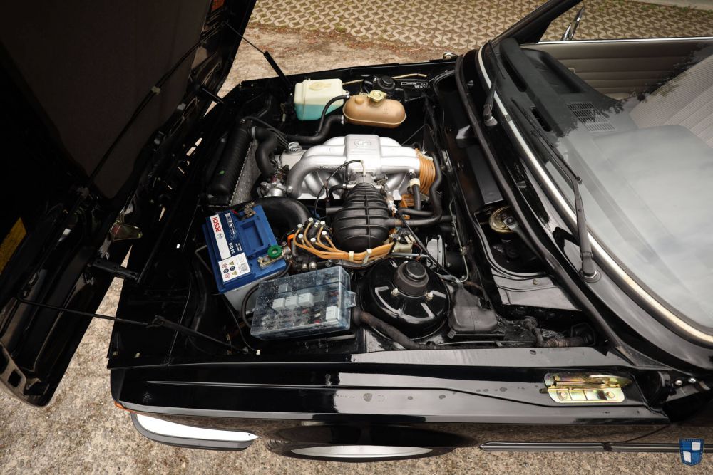 The interior of the car is very clean and all stock. Grey cloth on the original 1st series seats. Nice doorpanels, clean original carpets. The series one Dash is in great original condition and all switchgear is fresh and functional. The Motorsport steering is the icing on the cake as well as the period-correct Pioneer radio with 80's Pioneer speakers in the parcel shelf. Sounds great!
