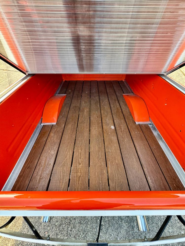 die Laderaumabdeckung (magnetisch) kann man nach oben öffnen & darunter verbirgt sich ein gut erhaltenes Holzbett