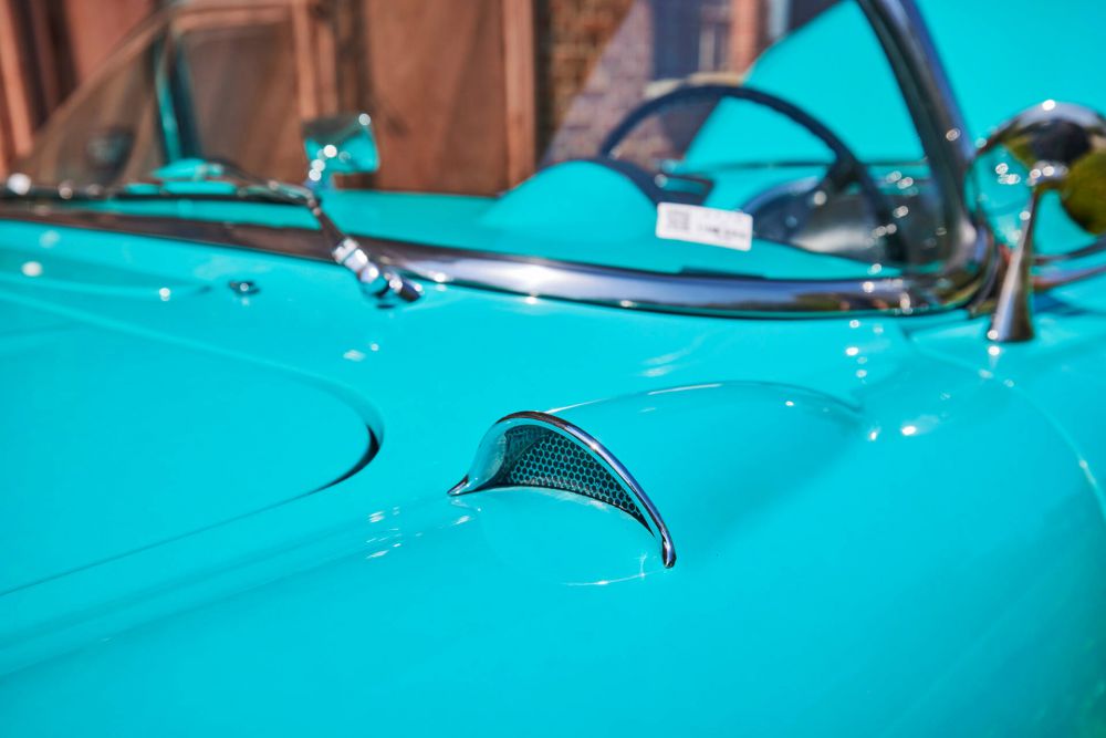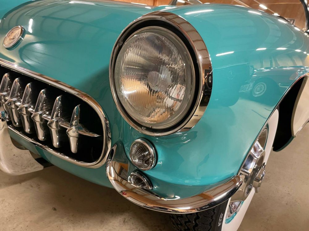 Die Corvette C1 hat eine Karosserie aus glasfaserverstärktem Kunstharz, die bis heute bei der Corvette beibehalten wird. Dadurch sparte man Gewicht und die Herstellung ist heute relativ einfach. Die erste grundlegende äußere Überarbeitung der Corvette fand 1956 statt. Die Heckflossen verschwanden völlig, dafür hielten seitliche Einbuchtungen hinter den Vorderrädern und die erste Zweifarb-Lackierung in der Modellgeschichte Einzug. Äußere Türgriffe und Seitenscheiben mit Fensterkurbel waren eine weitere Neuerung dieses Jahrgangs. Das Hardtop wurde ab Werk mitgeliefert. Die bisher in die Karosserie integrierten Frontscheinwerfer lagen nun frei und standen etwas hervor, während die bei der ersten Corvette noch herausragenden Rücklichter nun in die hinteren Kotflügel integriert wurden. Es standen zusätzliche Lackierungen und Innenfarben zur Auswahl. Mit dem überarbeiteten Fahrwerk konnte die Corvette noch mehr Leistung auf die Straße bringen. Die Verkaufszahlen stiegen 1956 auf 3467 Fahrzeuge. Statt des bisherigen Sechszylinders entschieden sie sich für einen „Small-Block“-V8 mit zunächst 4,3 Litern (265 in3) Hubraum und 143 kW (195 bhp) bei 5000 min–1. Der erste Chevrolet-„Small-Block“-V8-Motor und somit erste Corvette-V8-Motor kam 1955 auf den Markt. Dass ein Fahrzeug damit motorisiert war, wurde mit einem großen „V“ im Namen „CheVrolet“ an den Seiten der vorderen Kotflügel gezeigt. Mit dieser Veränderung entwickelte sich die Corvette zu einem echten Sportwagen mit sehr guten Fahrleistungen. Die Beschleunigung von 0 auf ca. 100 km/h absolvierte die Corvette mit dem V8-Motor in 8,7 Sekunden. Diese Corvette wurde in den USA sehr gut und sehr aufwändig restauriert. Ebenfalls wurde in den USA ein etwas stärkerer Motorblock verbaut, die original Vergaseranlage wurde wiederverwändet. Der Motor ist eingetragen und passt sehr gut zum Fahrzeug. Die jetzige Besitzerin fand den Wagen im Beverly Hills Car Club und brachte ihn nach Deutschland. Wir prüften den Wagen komplett und führten eine große Inspektion durch. Anschließend bestand der Wagen eine Vollabnahme und ein H-Kennzeichen. Meiner Ansicht nach eine der schönsten und besten Corvetten in diesem Baujahr. Auf Grund der sehr geringen Stückzahl von nur 3467 Stck. und dem außergewöhnlich guten Zustand ist dieses Fahrzeug ein gesuchtes Sammlerfahrzeug. Der Wagen kann sofort übernommen und angemeldet werden.