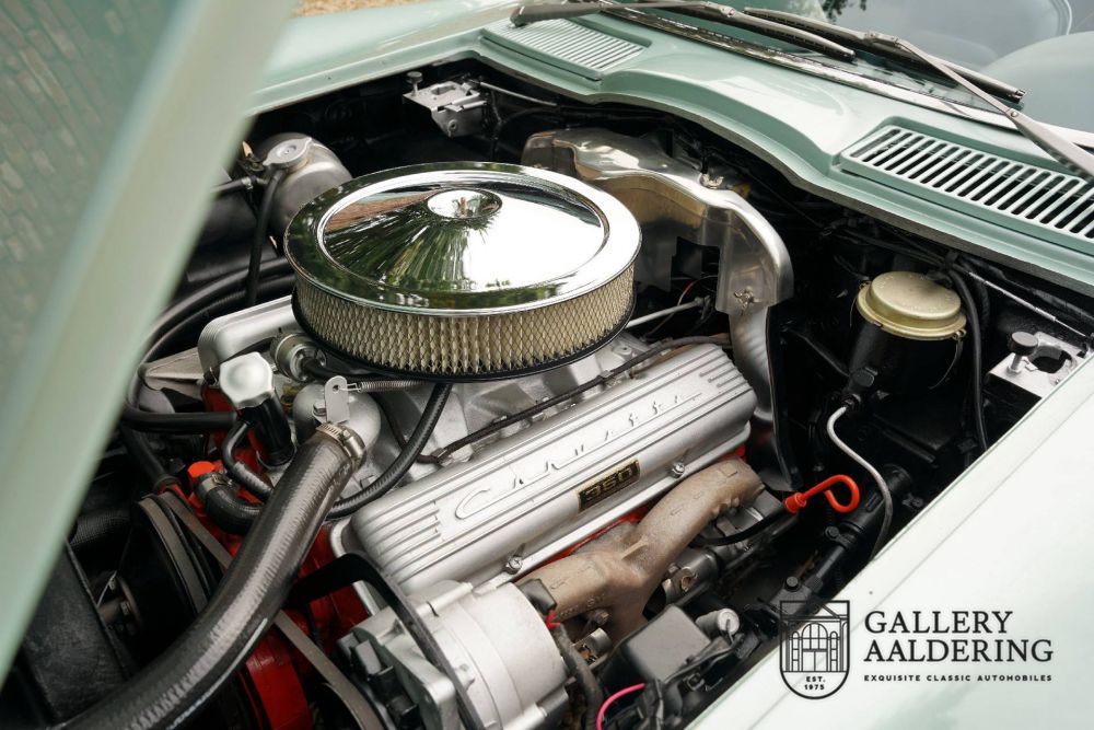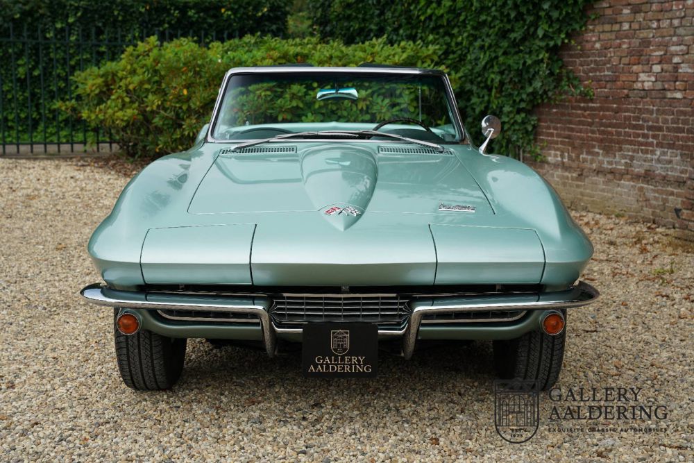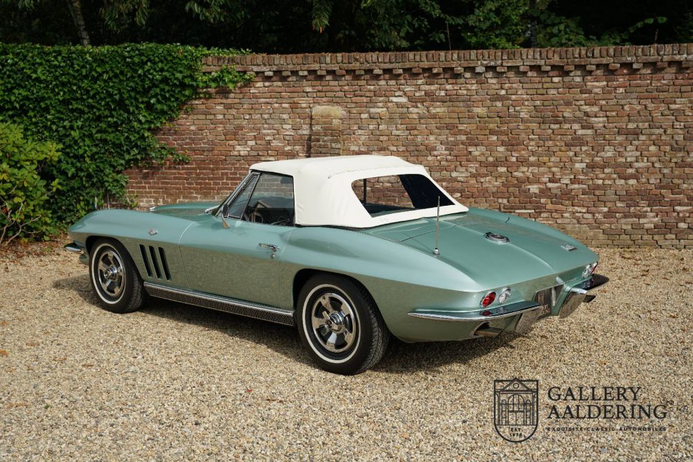 This green example first entered traffic in 1966 and has been restored since. This Chevrolet Corvette C2 Stingray Convertible has a 350Ps small-block V8 attached to the favoured manual 4-speed gearbox.