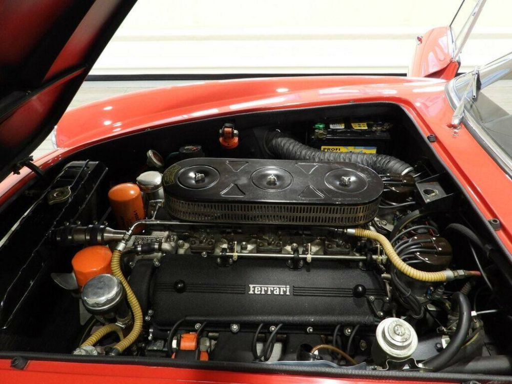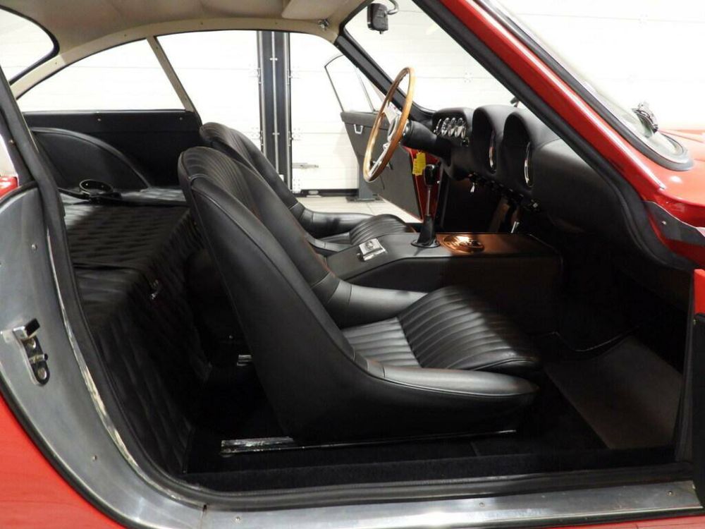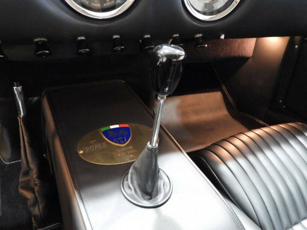 Sedili anatomici e pannelli in tutta pelle connoly nera, Ripiano posteriore per i bagagli (con cinghie di cuoio) rivestito in pelle connoly trapuntata a rombi, Moquette in lana nera al pavimento, Volante a tre razze Ferrari con corona in legno, Strumentazione Veglia, 5 cerchi a raggi Borrani con gallettone cromato con pneumatici Michelin 205/70 VR15, Specchio esterno lato guida tondo cromato