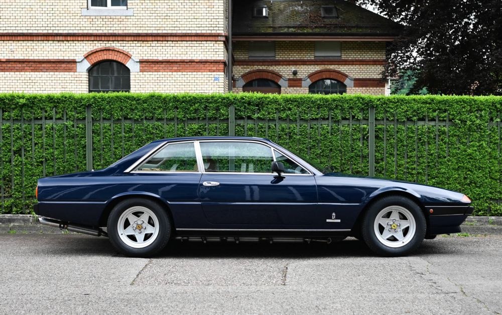 Dieser 400i Automatic stammt aus 24 Jahren Besitz. Das Auto ist passend zur schlichten Formgebung im dezenten Blu Pozzi lackiert und verleiht dem Auto das gewisse Understatement. Die Lackierung befindet sich in einem sehr guten Zustand und das Lederinterieur präsentiert sich komplett im Originalzustand mit wunderschöner Patina. Der Unterboden ist gepflegt und sauber, die Mechanik arbeitet einwandfrei. Der V12 läuft perfekt und die K-Jetronic sorgt für eine gleichmässige und direkte Gasannahme während der 3-Stufen Automat sauber schaltet. Ein exklusives und bequemes Auto für Kenner, Ferraris Viersitzer für luxuriöses Reisen. Inklusive unberührtem original Werkzeugkoffer. 1 von 873 Exemplaren. Mit Veteranen MFK 09.2019.