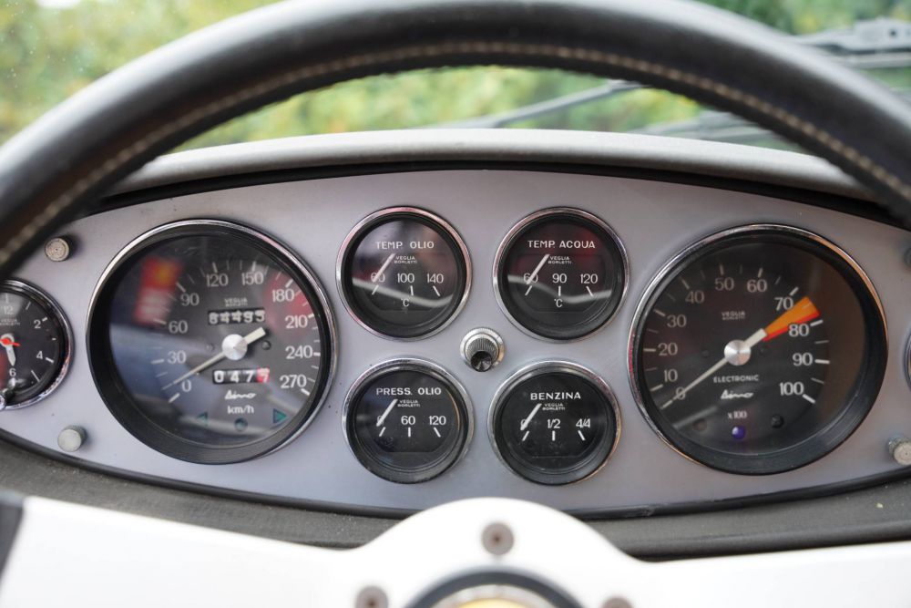 The result is an exceptionally good and beautiful Dino. The body, which has been completely restored and painted in its original colour, is in new condition. Fittings, paintwork, chrome: there is simply nothing to criticize about the condition. The car stands on the correct Campagnolo wheels, providing an unparalleled appearance.