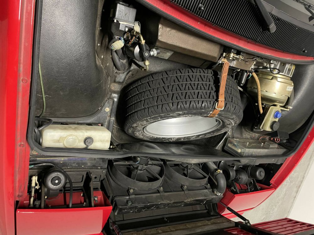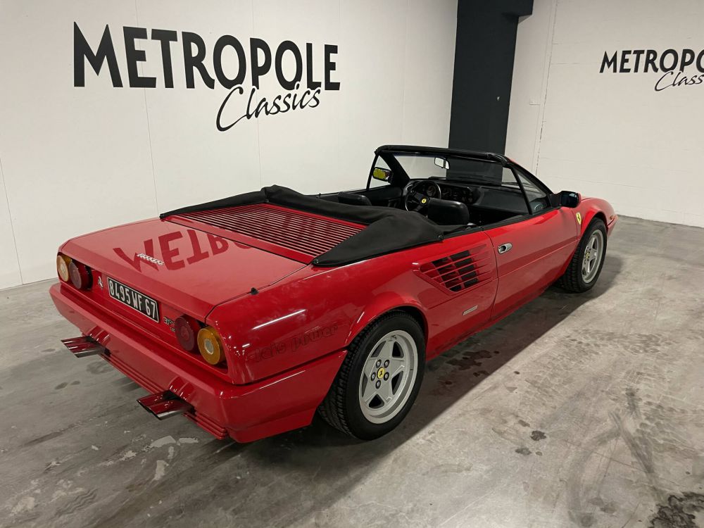 Presented in the classic Ferrari colour combination of Rosso Corsa over Nero leather seats, the stylish looks of this example are completed by a black soft-top hood. Its first owner is understood to have fitted different Ferrari wheels, and also lowered the car. In the ownership of Monsieur Petitjean since 1989, the Ferrari was used regularly by its consignor in the south of France until 2000, at which point it was put on static display in his collection, The car is presented with a Ferrari user manual and service book in a leather pouch, together with its jack and tool roll. The car is undergoing a full service now.