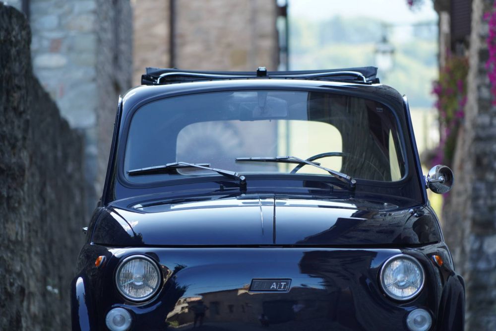 DG Classic cars presents a beautiful example of a Fiat 500 R from 1975, in excellent condition, interior preserved in good condition, completely original, unrestored, only repainted once to refresh the colour, impossible to find in these conditions of conservation, original 595cc engine and synchronized gearbox, much more comfortable to drive, rust free body, no work to be done, mechanically in good condition, two owners, original documents and plates.