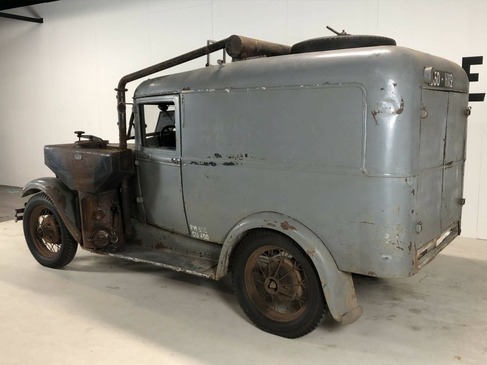 This is a Ford that runs on petrol, kerosene and coal gas. It is unrestored and still drives well. This car got the coal gas installation in about 1940 and still has it. This is very rare because at that time almost all installations were removed. This is a car for the enthusiast of an original coal gas installation.