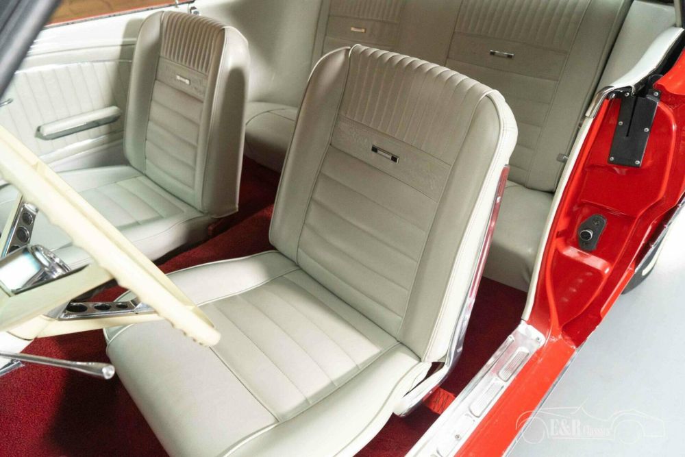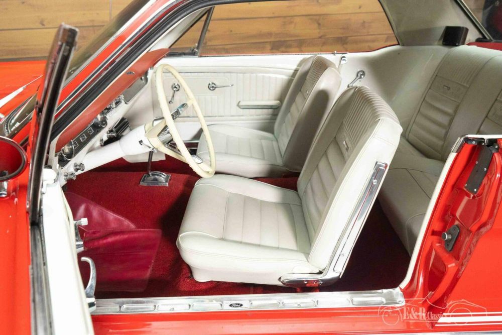 De Ford Mustang Coupe die we hier aanbieden is echt een plaatje om te zien. Hij is uitgevoerd in een prachtig rood lakwerk dat erg mooi combineert met het chroomwerk en helemaal past bij deze Amerikaanse klassieker. De Mustang is tevens voorzien van de gewilde GT-Look met de extra koplampen, GT tankdop en uitlaatdempers in de achterbumper. Het witte Pony interieur verkeert in een zeer nette staat en steekt mooi af tegen het rode lakwerk. Kortom: een zeer compleet uitgeruste 1965 Mustang in mooie kleurstelling die helemaal klaar is voor zijn nieuwe eigenaar.