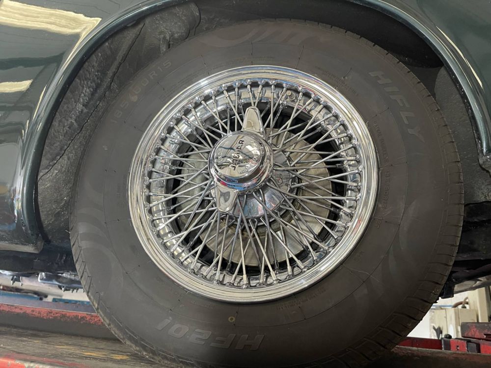 The body is free from corrosion and the metallic green paintwork is in fine condition, having very recently had attention to some small marks and blisters to bring it up to a high standard of finish. The brightwork is all intact and in good condition as are the chrome wire wheels fitted. The underside of the car only shows a little light surface corrosion.