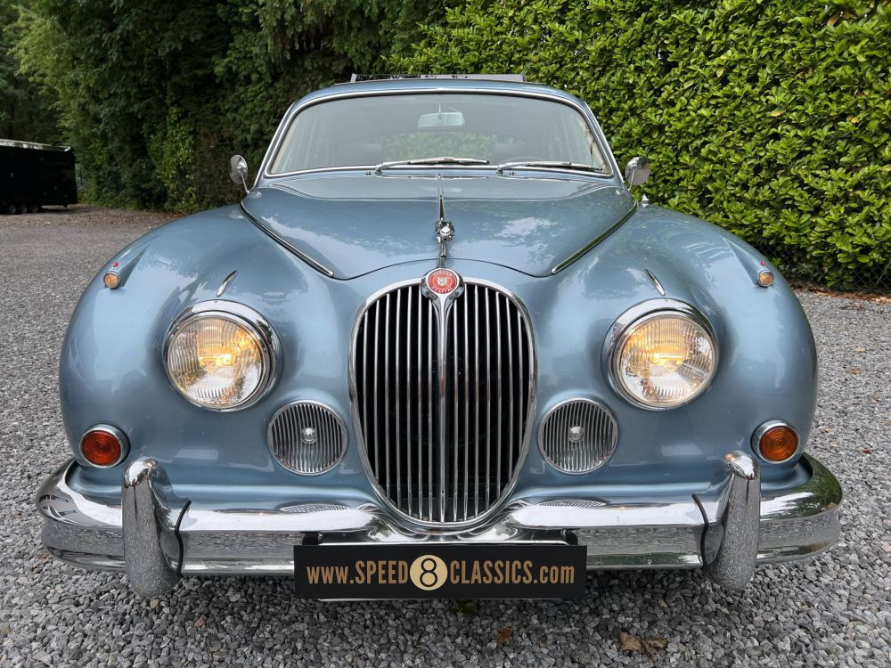 Jaguar MK II 3.4 Automatic in very good condition, original Webasto sunroof !Light blue metallic, Chrome wire wheels, electrical adjustable leather seats, powersteering...be ready for the summer !!