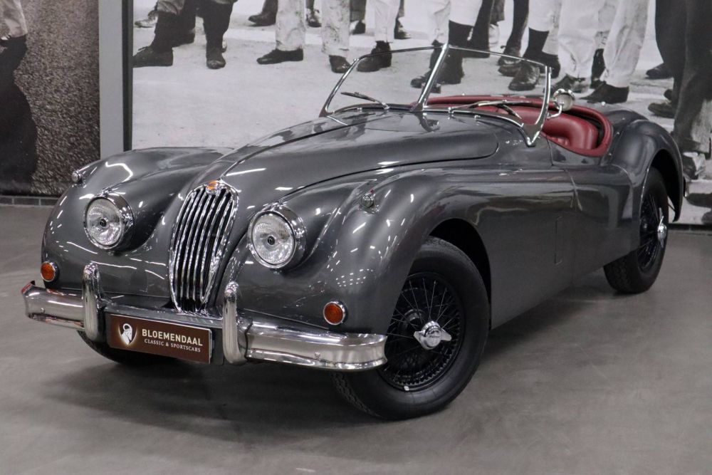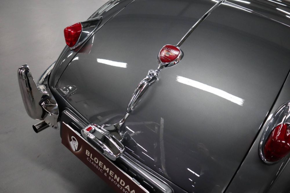 According to many, an OTS (Open Two Seater) is the most beautifully designed Jaguar. We are happy to agree with that, to be honest. Such a body is a great beauty to see. Beautiful flowing shapes and exactly the right proportions in terms of length of the front and rear of the car. With the sporty two-person interior in between. In this case, equipped with the most beautiful dark red leather imaginable. No fancy wood accents like on the Drop Head Coupe, but just everything in leather, with all the instruments that provide the driver with the necessary information in the center of the dashboard. The leading role here is reserved for the tachometer, which really wants to go as far as possible as proof that the 3.4 liter 6-cylinder DOHC (Double Overhead Camshaft) engine is capable of great things.