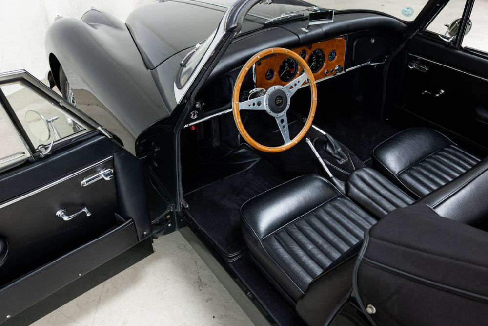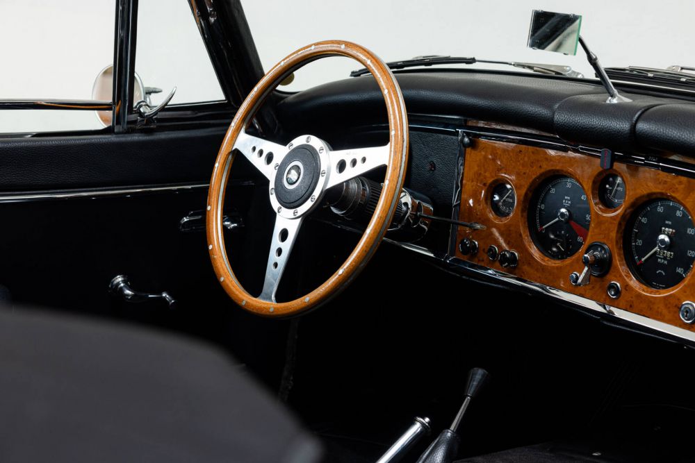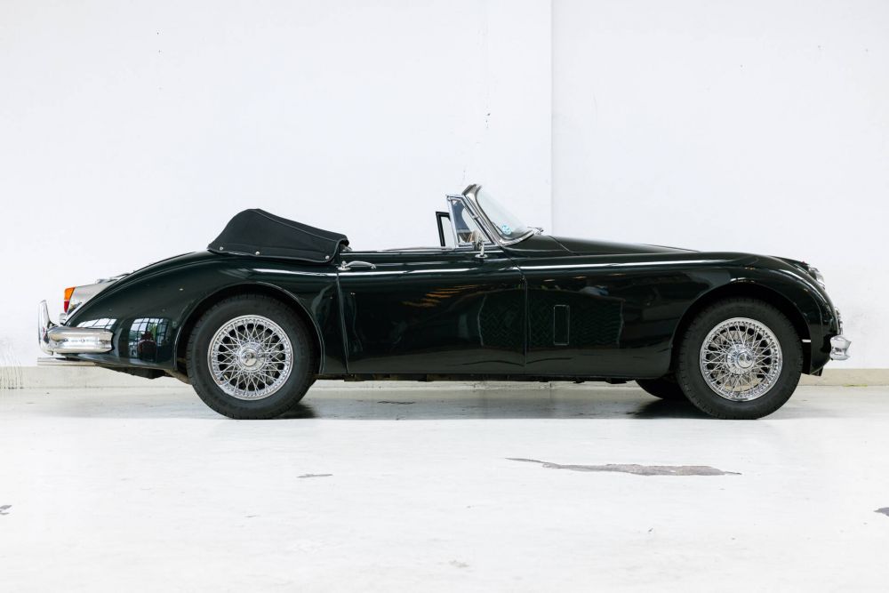 Our XK 150 3.8 DHC comes from Eberhard Thiesen and has been fully restored to originality, including a heritage certificate indicating that the car has matching numbers. Whether you're looking for a solid XK150 or simply want to experience the thrill of driving a true classic, this Jaguar offers both. You don't need to worry about the bodywork or mechanics with this specimen. And as soon as you feel the power steering on the highway in overdrive on the merge lane, all worries disappear at once.