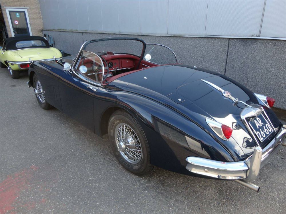 Very nice and perfectly restored Jaguar XK150 Roadster with a 6 cil 3.4 ltr engine. Perfect paint, perfect matching engine V4456-8, perfect chassis, has a SS exhaust, new wire wheels, new interior. A perfectly running/driving car. Drive it home. Biggest choice in REAL Classic Cars in the Stolze Collection , with more than 450 in stock.! from a project to perfect .!