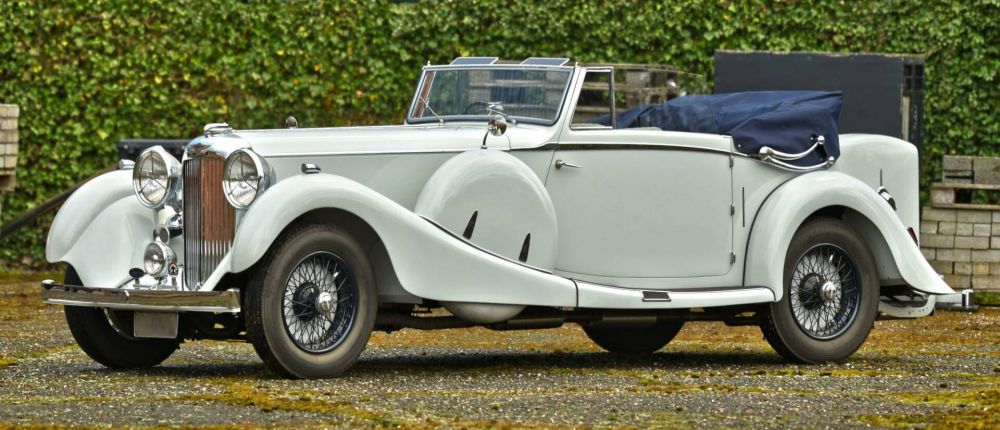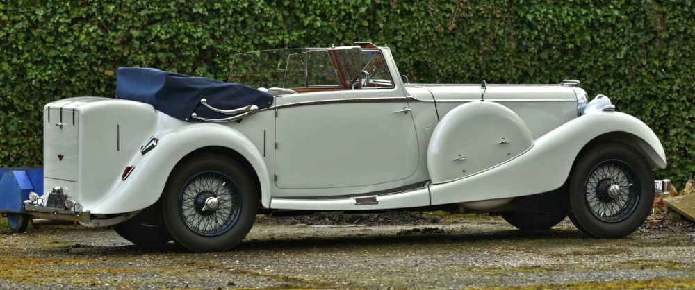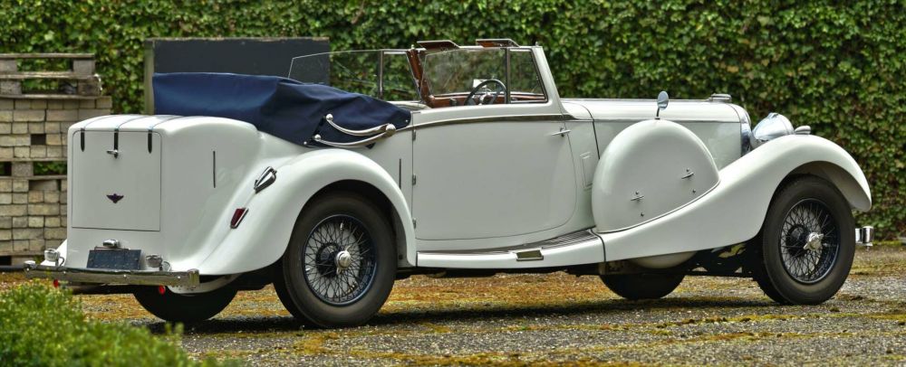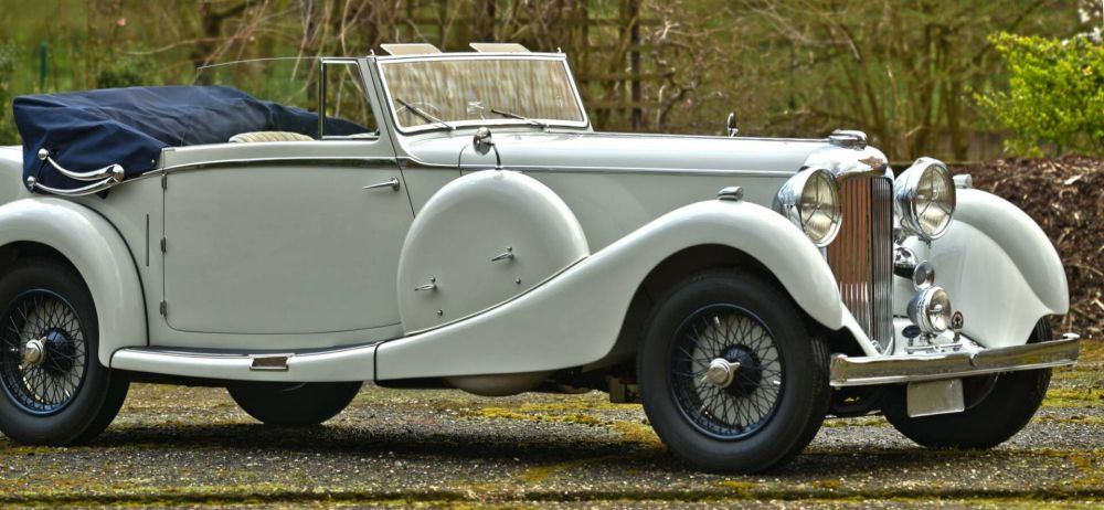 1936 Lagonda LG45 Drop head Coupe Chassis number: 12104 Registration number: HXV183 (Previous) Fully Nut & bolt restored some years ago, this car has seen very sparing dry weather only use ever since & has also been the winner of some Lagonda club awards. Unusually the car was specified from new with an extra large boot allowing for long continental trips with luggage. The car is in immaculate prize winning condition to this day. When we arrived to photograph it the car started instantly as did all the cars in the collection & has clearly been fastidiously looked after having covered just a few thousand miles since restoration was completed. The restoration was a nut & bolt body off affair. New ash wood was let in as & where required once the frame was exposed. Upon reassembly the car had a paint job of superb quality in a shade of pale grey. All the mechanics were disassembled & rebuilt as required to as new specification. Grey Connolly hides were sourced for the interior along with a blue double duck roof & hood bag giving the car & elegant & striking appearance. A full set of photographs come with the car detailing the extensive restoration undertaken. Through the Twenties and early Thirties, a confusing array of models and bodies characterized Lagondas but in 1933 Lagonda began to modify its 'Selector' chassis to accept the 4 1/2 Liter Meadows overhead valve six cylinder engine which had become available in quantity when Invicta, its contracted user, went into receivership. Quickly implemented, the new M45 enjoyed immediate success with 108 horsepower and attractive, low coachwork designed and built in Lagonda's own coachworks at a price some 600 pounds less than a comparable Bentley, and at that price the Bentley had yet to be bodied. That was not, however, sufficient to ensure success in the midst of the depression and in 1936 Lagonda was bought out of receivership by Alan Good. He installed Dick Watney (from Rootes) as Managing Director and W.O. Bentley as Technical Director and set out to build 'the best car in the world', with a V-12 engine designed by Stuart Tresilian from Rolls-Royce. In the meantime, however, a reset was necessary. That was the LG45, a thoroughly redesigned model with a new W.O. Bentley-designed X-braced frame and wishbone independent front suspension with torsion bars. New coachwork was essential to establish the revitalized Lagonda's identity and it was designed by a young Frank Feeley whose later designs for Aston Martin would establish him as one of the foremost body visionaries of the mid-century years. His LG45 designs, tourer, saloon and new drophead coupe, were superb, with long, sensuosly swelling, sweeping fenders, a long bonnet, dual sidemount enclosures (one holding the spare wheel and tire, the other the tool set and jack) and a clean, integrated grille and front fender valences that hid the front suspension. The drophead coupe's top incorporated an efficient folding mechanism and simple profile when erected. This 1936 Lagonda LG45 Drophead Coupe is chassis number 12104, one of just a few Sanction 2 LG45s built with a revised location for the dual ignition's pair of magnetos. The car is located in Belgium & may be viewed there by prior appointment. It has been part of a small collection for a number of years & is now being sold due to the advanced age of the current owner. It is 1930's elegance at its finest & is a fast powerful open tourer in the style of a grand routier. Richard Biddulph 07967 260673