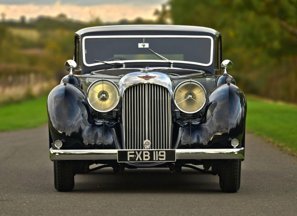 Chassis number '14080' - was first registered 'FXB 119' on 10th May 1939 to Miss Marian Mathieson of 1 Park Gardens, Glasgow. The handsome, owner-driver, razor edge sports saloon coachwork is by Freestone & Webb of North London, one of the finest of all British coachbuilders and a firm associated with quality marques from its earliest days, particularly Rolls-Royce, Bentley and Mercedes-Benz. In January 1947 the car passed to its second owner, Mr Edward Michael Behrens of Hanover Terrace, Regents Park, London NW1. Its third UK owner was David Hemley Adams, who purchased the car on 12th December 1955 and whose last change of address in the UK is recorded as 1967.