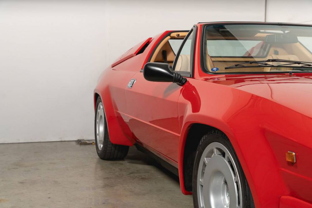 It's no coincidence that the Jalpa is back in the spotlight right now. The style of the 80s is not only making a comeback in all fashion trends this year but is reentering the stage globally in all kinds of different settings. Striking colors, bold angular shapes, eccentric playful elements. The Jalpa has it all. The striking combination of beige leather with the car's red gives it a retro look that appears timeless. The playful geometric lines are reflected in the typical 80s Targa roof, the pop-up headlights, the wide, low body. The abundance of air intakes and ventilation openings not only serve an aesthetic purpose but also help regulate engine temperature and aerodynamics. Well-thought-out choices that lead to a visually striking and technically advanced supercar. The Jalpa is ready to rumble.