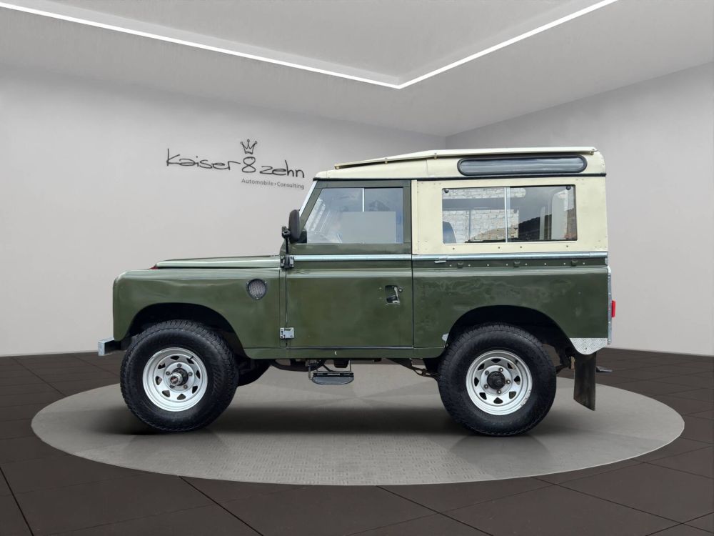 Hier angeboten wird ein 1972 Land Rover 88 Serie III mit vollverzinktem Rahmen und Tropen-Dach, sowie zwei Sitzbänken im Heck. Im Interieur wurde der Himmel neu bezogen, sowie Applikationen am Amaturen- und Türbereich mit Leder überzogen. 33.980 Meilen, Tachostand abgelesen.